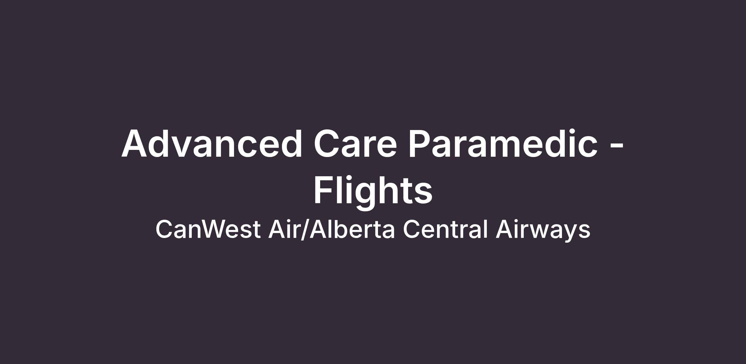 CanWest Air is seeking Experienced Advanced Care Paramedics (ACP) to join our air medical operations as Flight Paramedics.