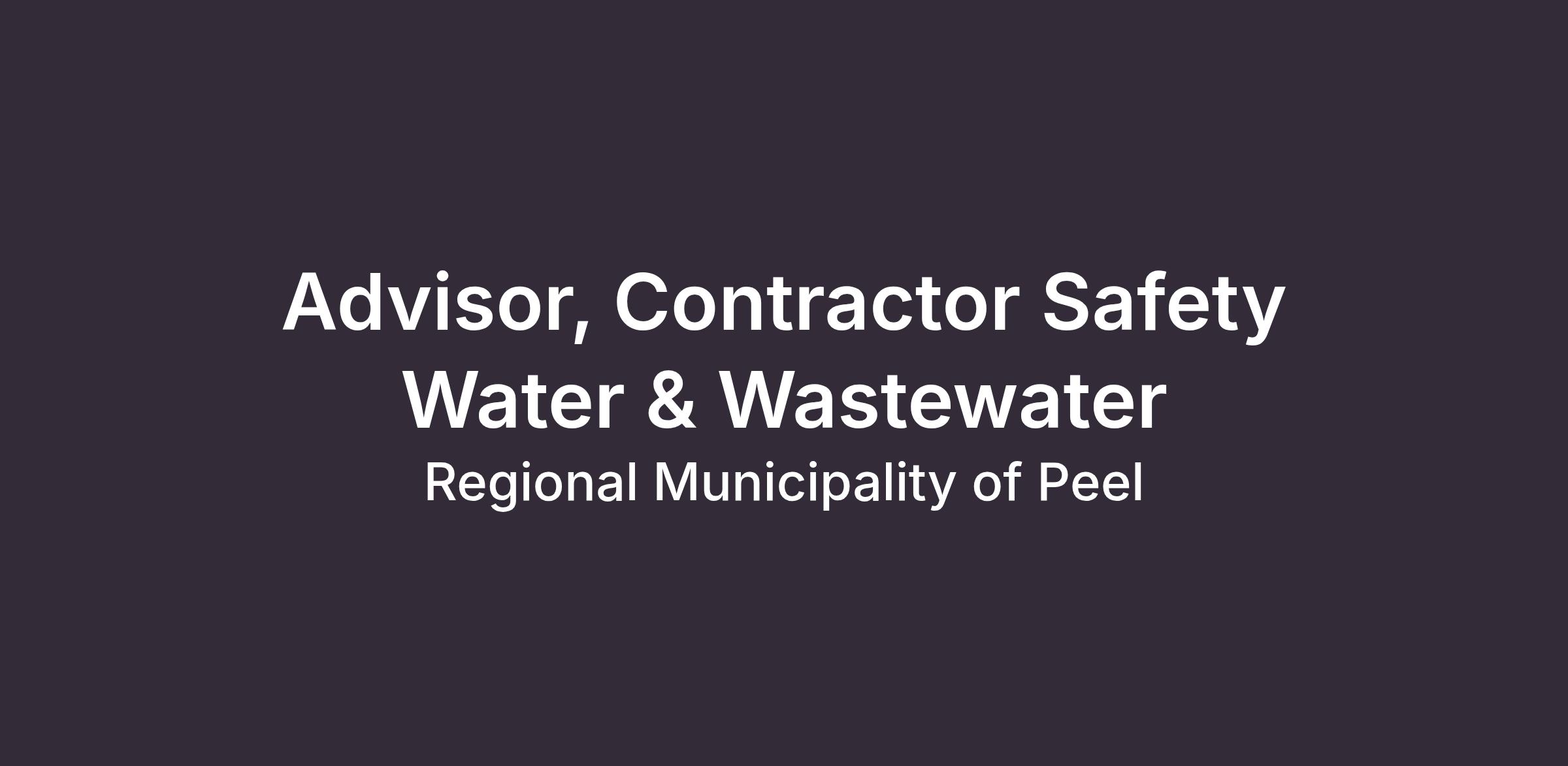 Advisor, Contractor Safety Water & Wastewater