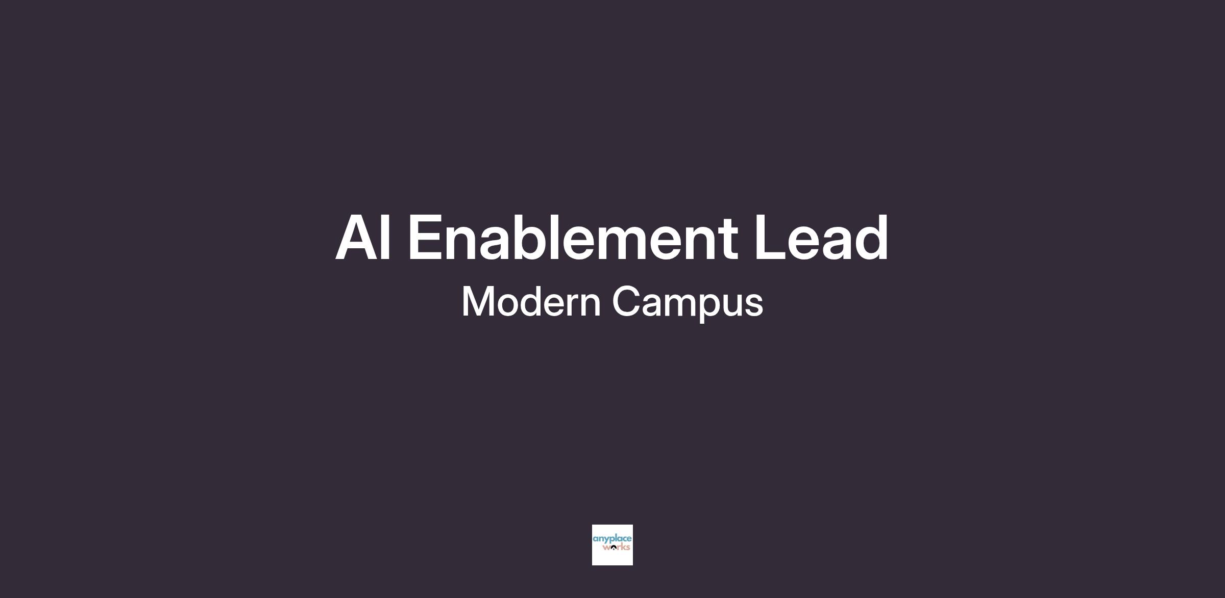 What’s the role?Modern Campus is embarking on a long-term journey to responsibly adopt, scale, and lead with AI across our organization. As our AI Enablement Lead, you’ll be at the heart of this transformation - helping every team understand, embrace, and harness AI to work smarter, faster, and more creatively.