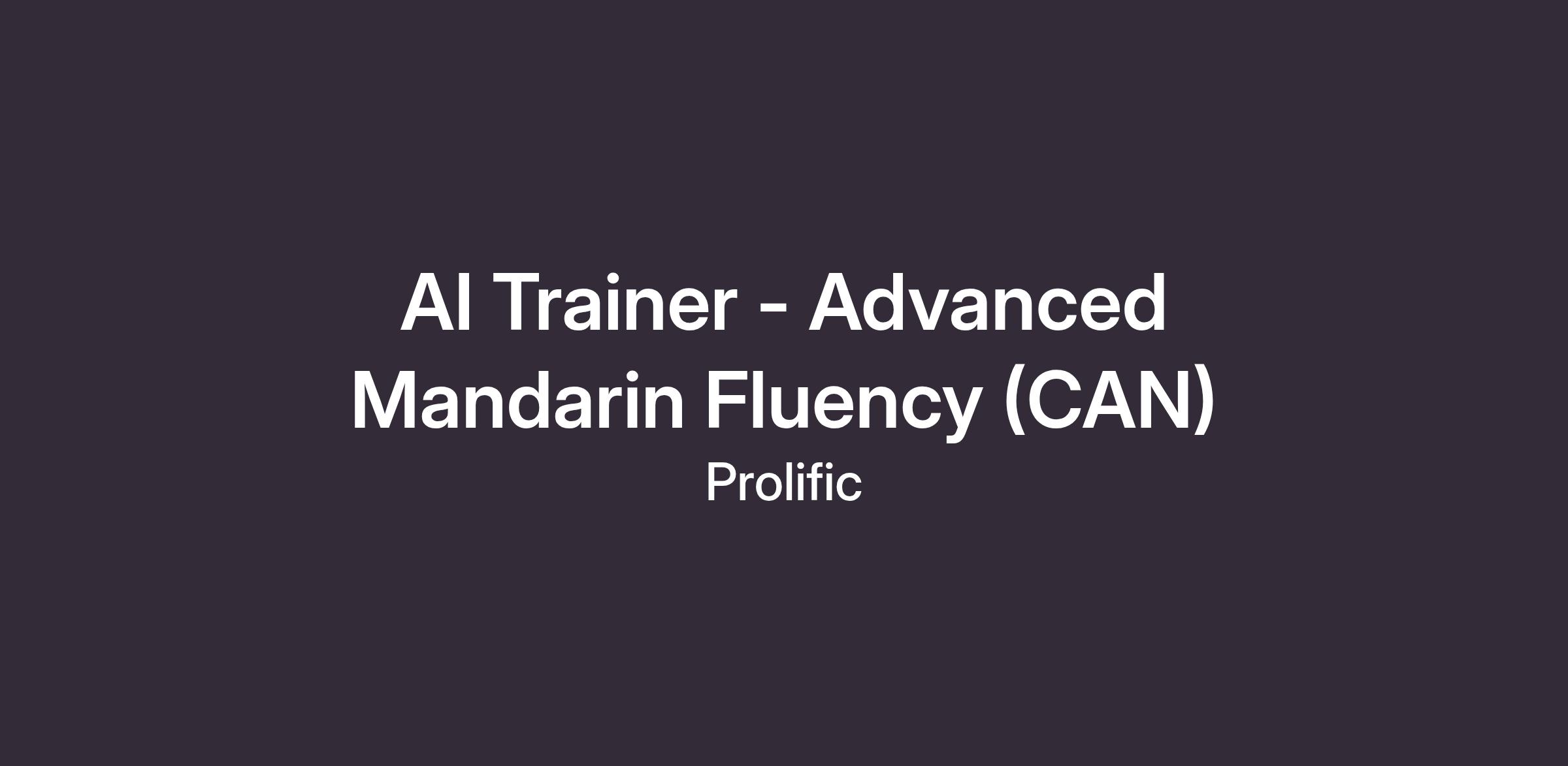 We’re looking for Advanced Mandarin Speakers to help train and evaluate cutting-edge AI models. If you have the necessary experience, we’ll send you a quick test to assess your skills and suitability for AI tasks. If successful, you’ll be invited to join Prolific as a Domain Expert participant, where you’ll get paid to train and evaluate powerful AI models.