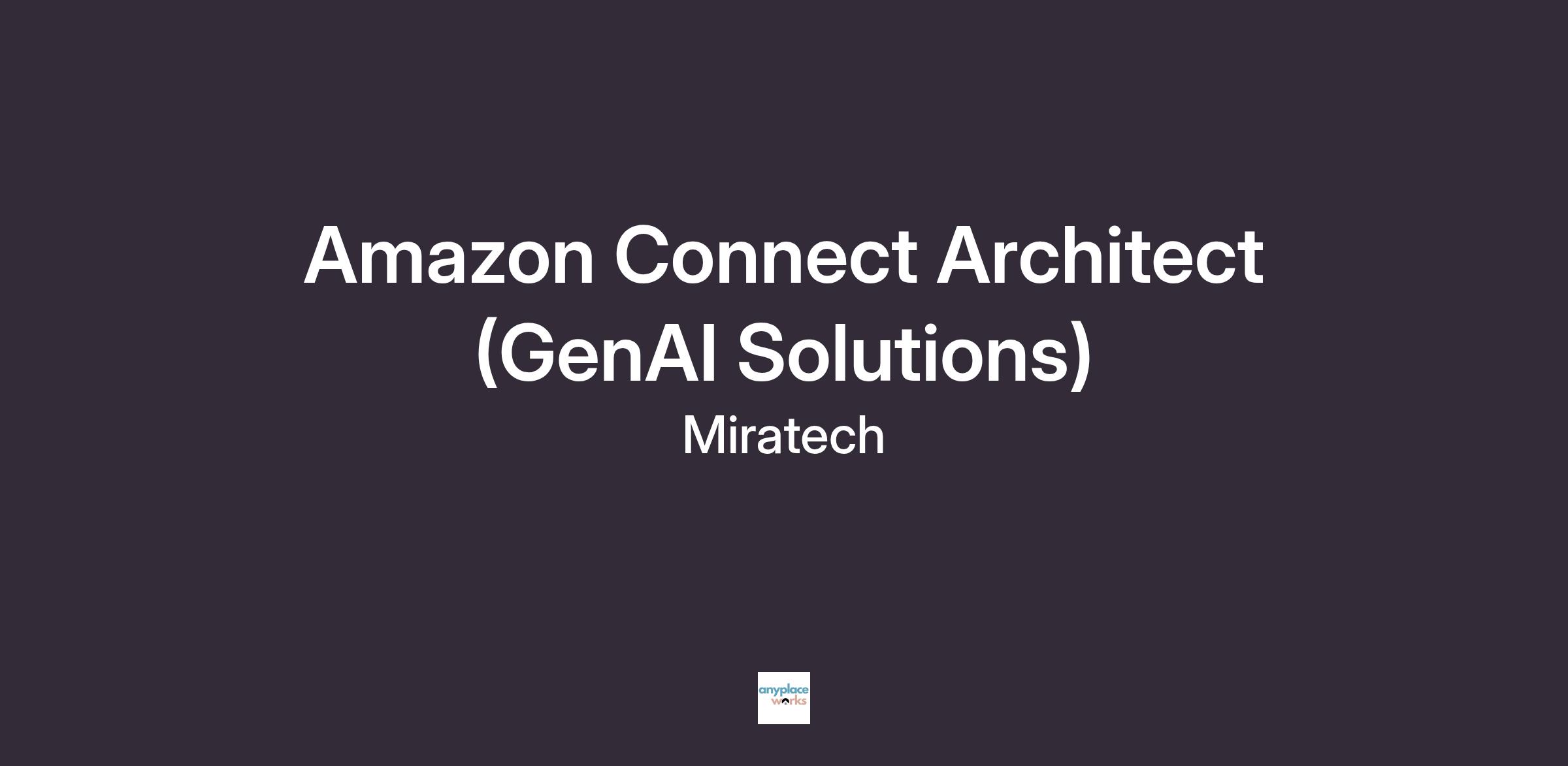We are looking for an experienced AWS Architect to design, develop, and optimize scalable and secure digital contact center solutions using Amazon Connect and modern GenAI technologies. The ideal candidate will lead architecture initiatives, integrate enterprise systems, and deliver intelligent customer and agent experiences through automation, LLMs, and real-time data workflows.