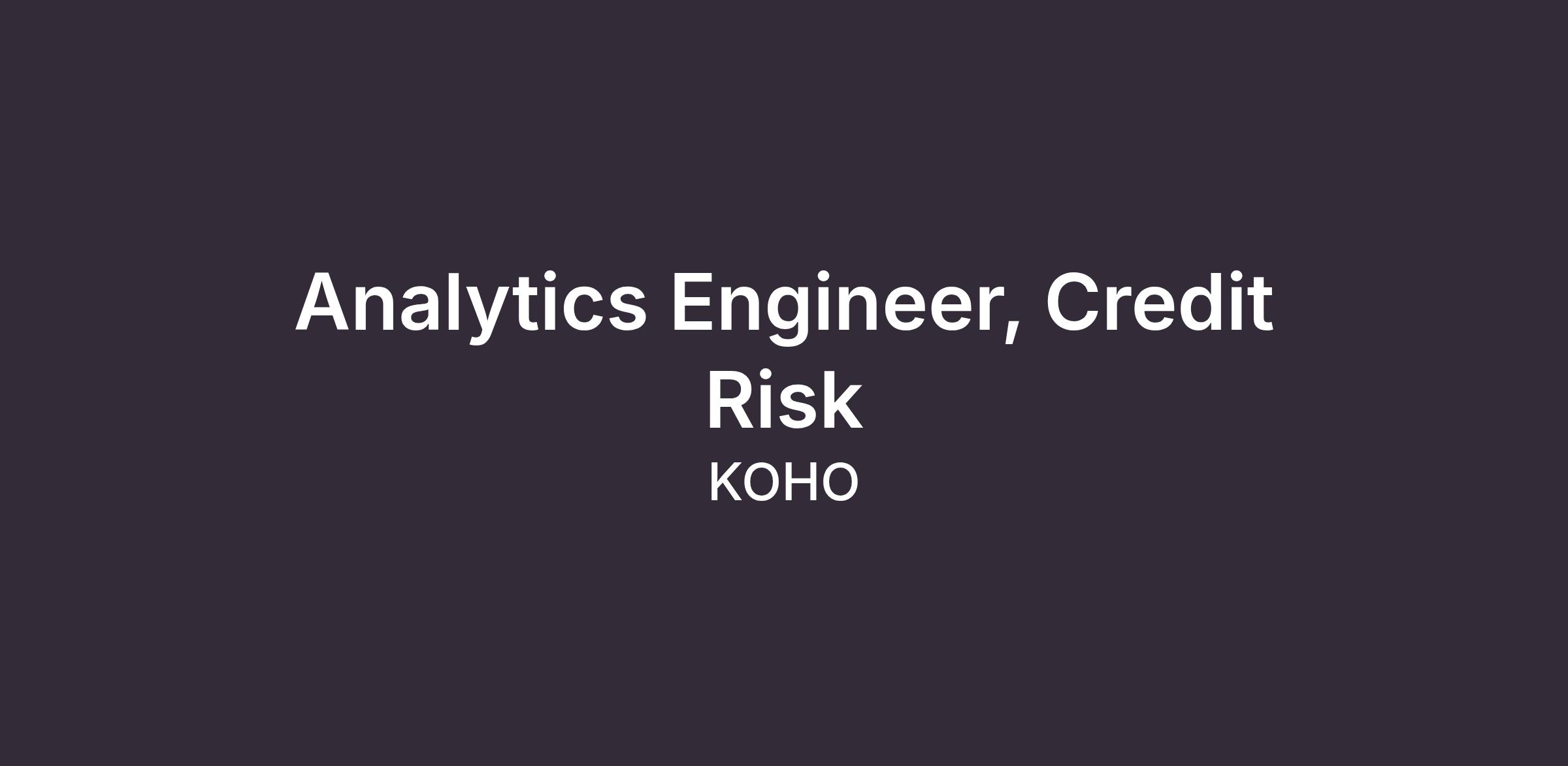 KOHO is looking for an Analytics Engineer, Credit Risk, to build and scale robust reporting pipelines that power complex credit reporting. In close collaboration with the Credit Team, you'll partner with Payment Operations, Tech, Security, Risk, and Finance teams, as well as fellow Analytics Engineers, on multi-month builds, ensuring our data infrastructure keeps pace with ambitious credit product initiatives.