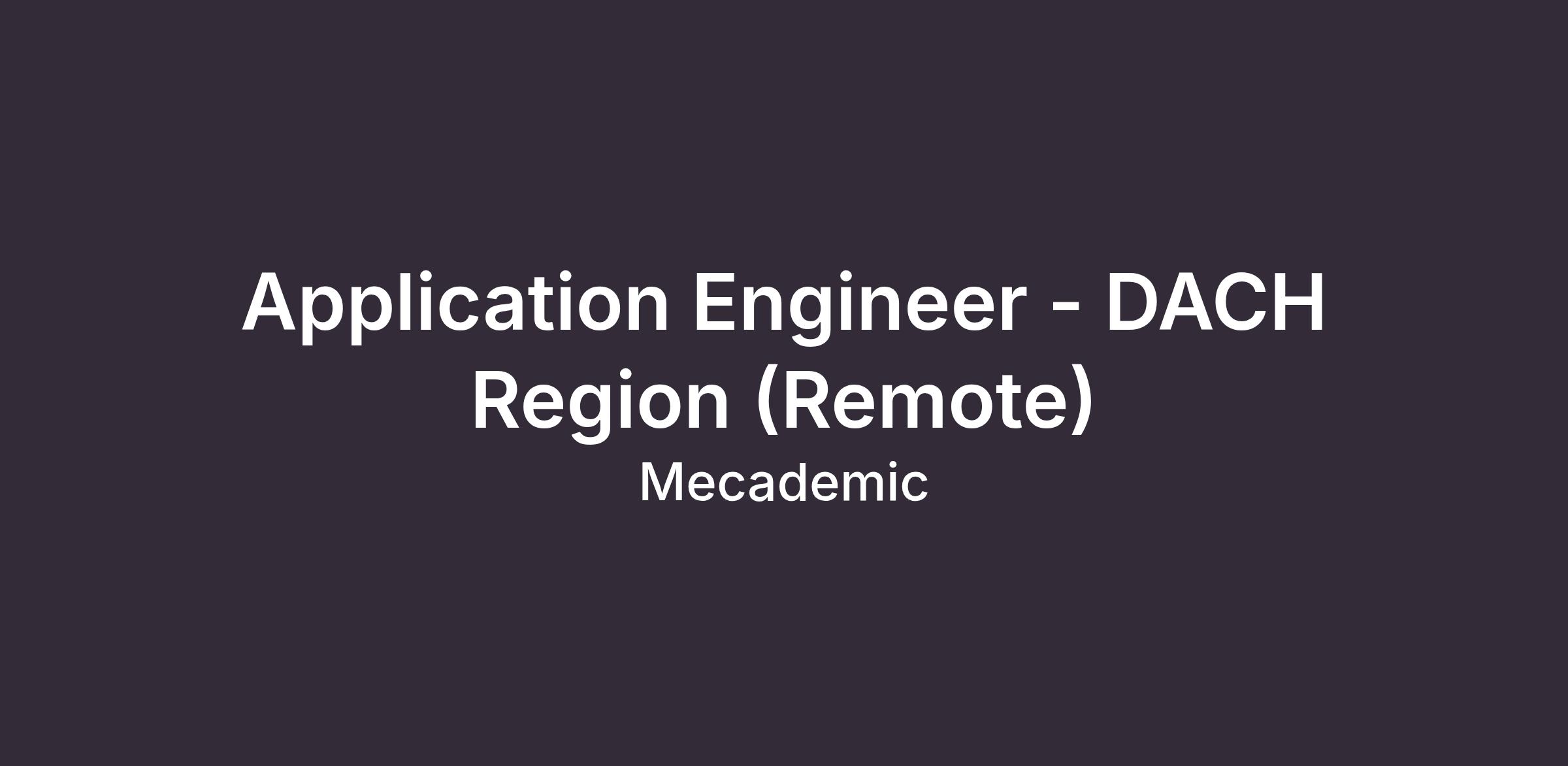 Application Engineer - DACH Region (Remote)