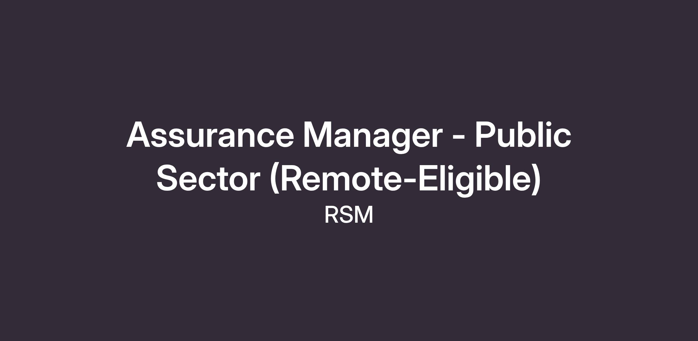 RSM is looking for an Assurance Manager to join our public sector assurance practice which specializes in serving a wide array of organizations, including level of governments (Municipal, Provincial, and Federal), nationally recognized not-for-profit organizations and large philanthropic foundations. Experience the personal satisfaction of being part of a team that helps public sector and not-for-profit organizations position themselves to better achieve their mission and serve their members and constituents.