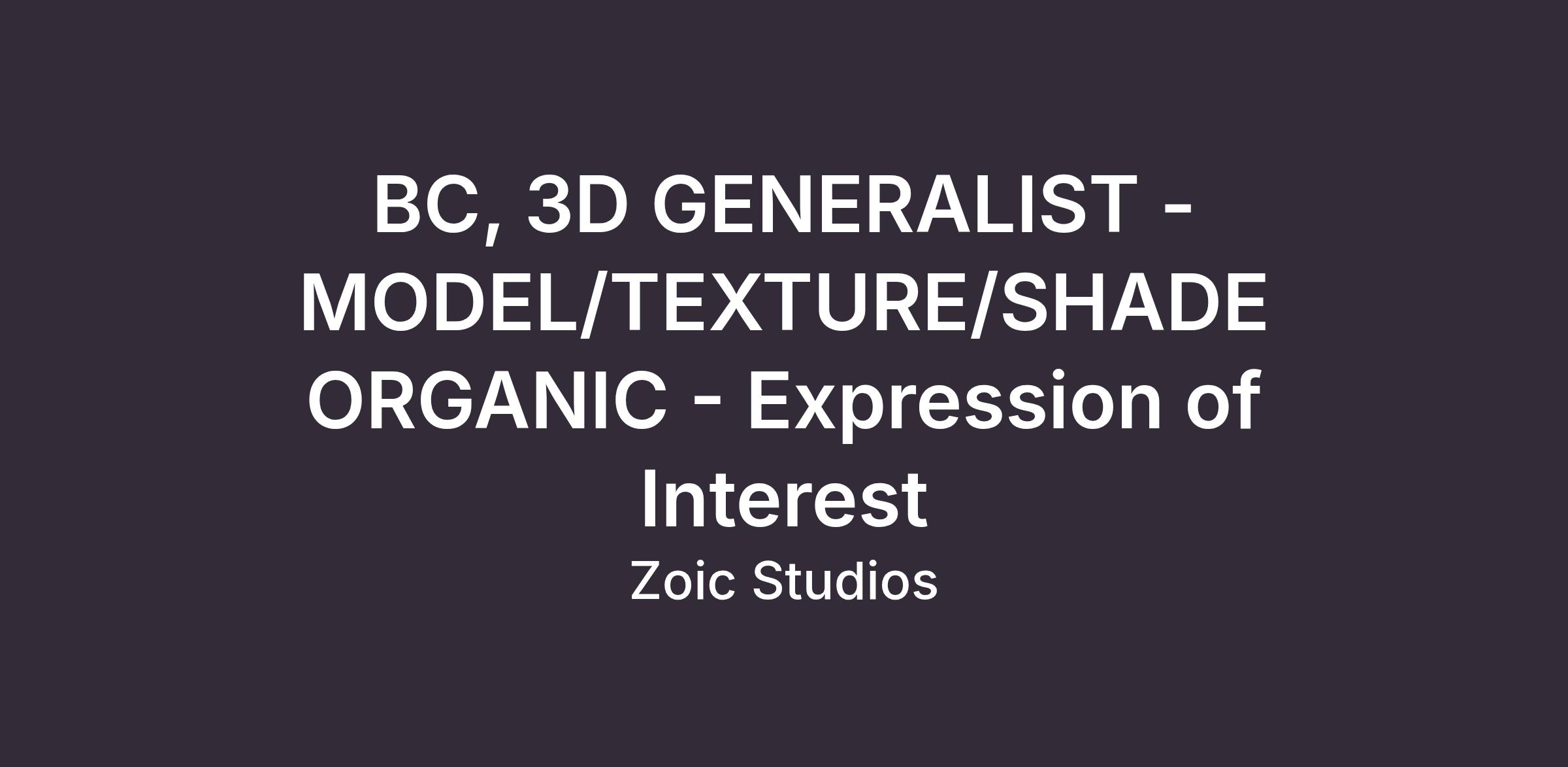 3D Generalist - Model/Texture/SHADE ORGANIC - Expression of Interest