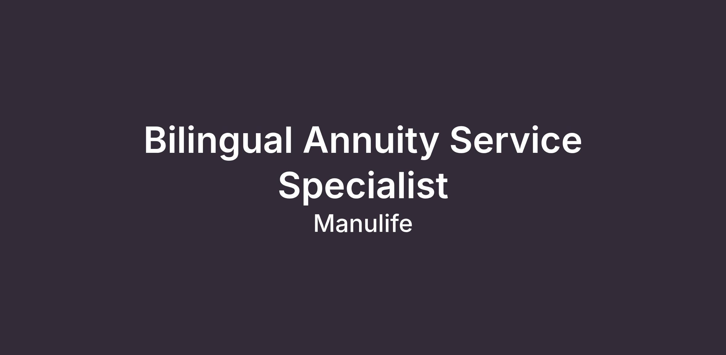 The Bilingual Annuity Service Specialist serves as a primary point of contact for Annuitants, Advisors and internal business partners, acting as a subject matter expert in the administration of Manulife’s Annuity products. In this role, the Specialist is responsible for executing complex transactions within the Annuity record‑keeping systems, processing customer-directed changes, and handling escalated cases. The Specialist is expected to maintain a current knowledge of changes & upcoming initiatives that may impact business processes and supports the timely adoption of new and updated industry & product standards when appropriate.