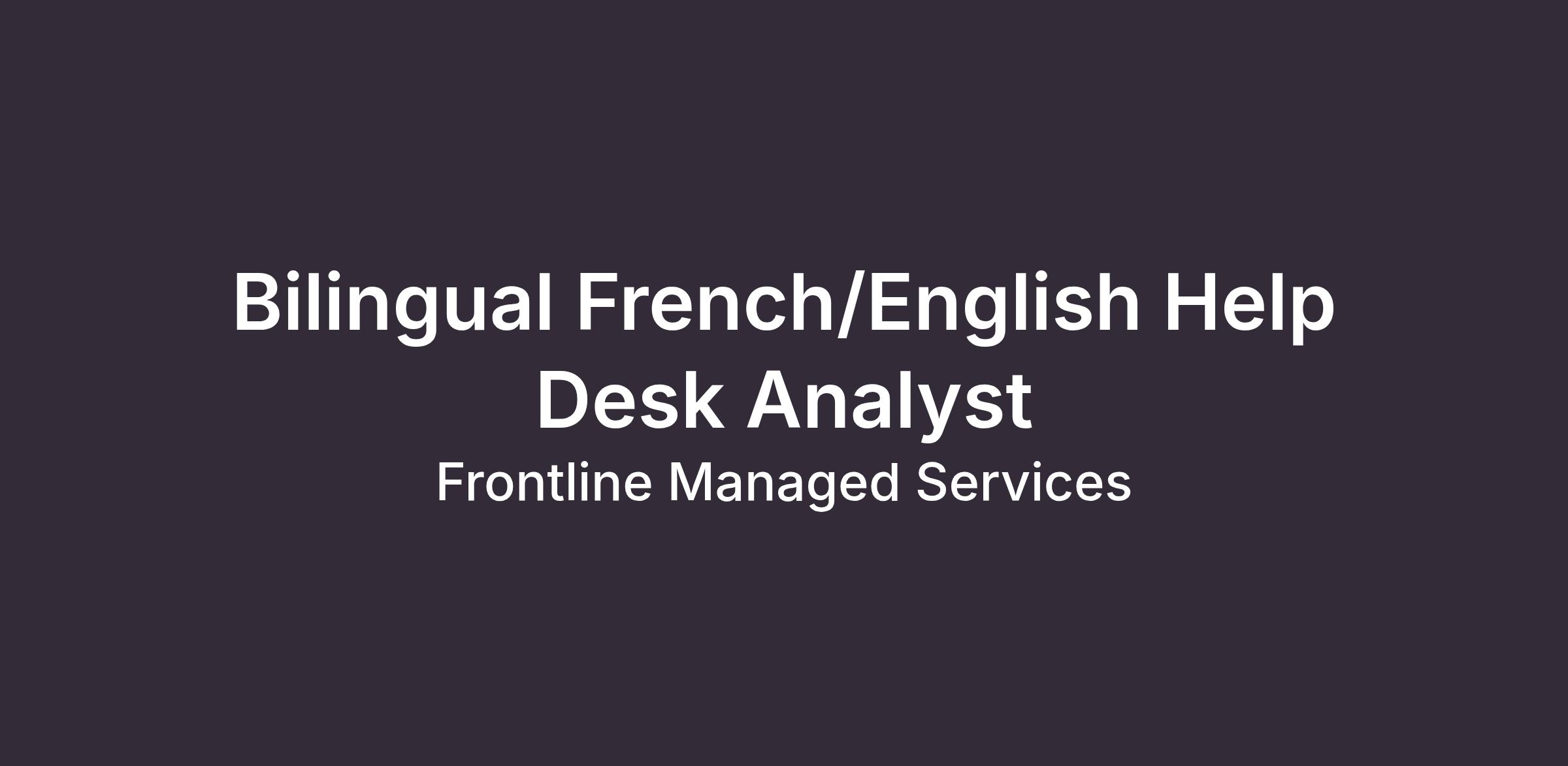 We are seeking Bilingual (English/French) Help Desk Support Analysts to join our team in downtown Toronto.