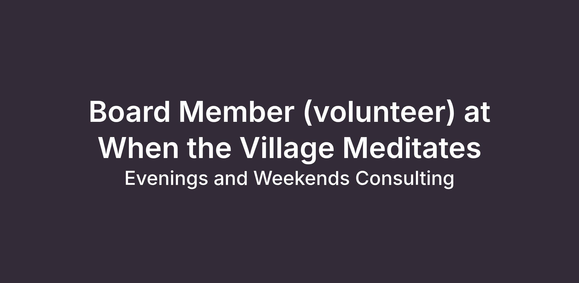 If so, we invite you to apply to join the Board of Directors of When the Village Meditates.