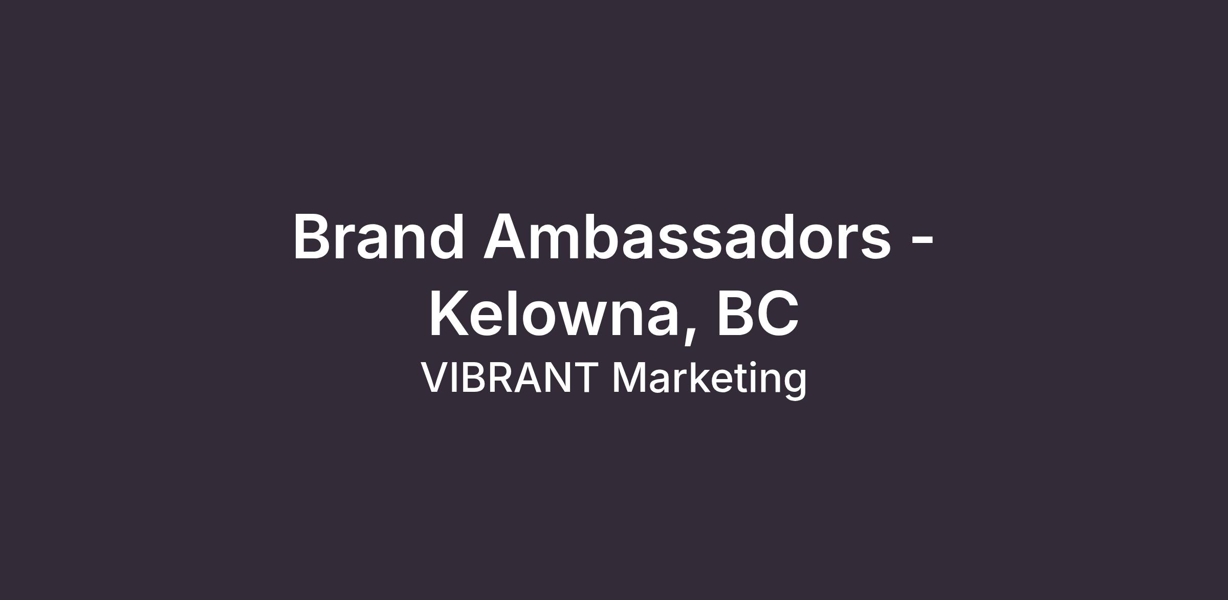 Brand Ambassadors + Team Lead Needed | Kelowna, BC | National Brand Activation