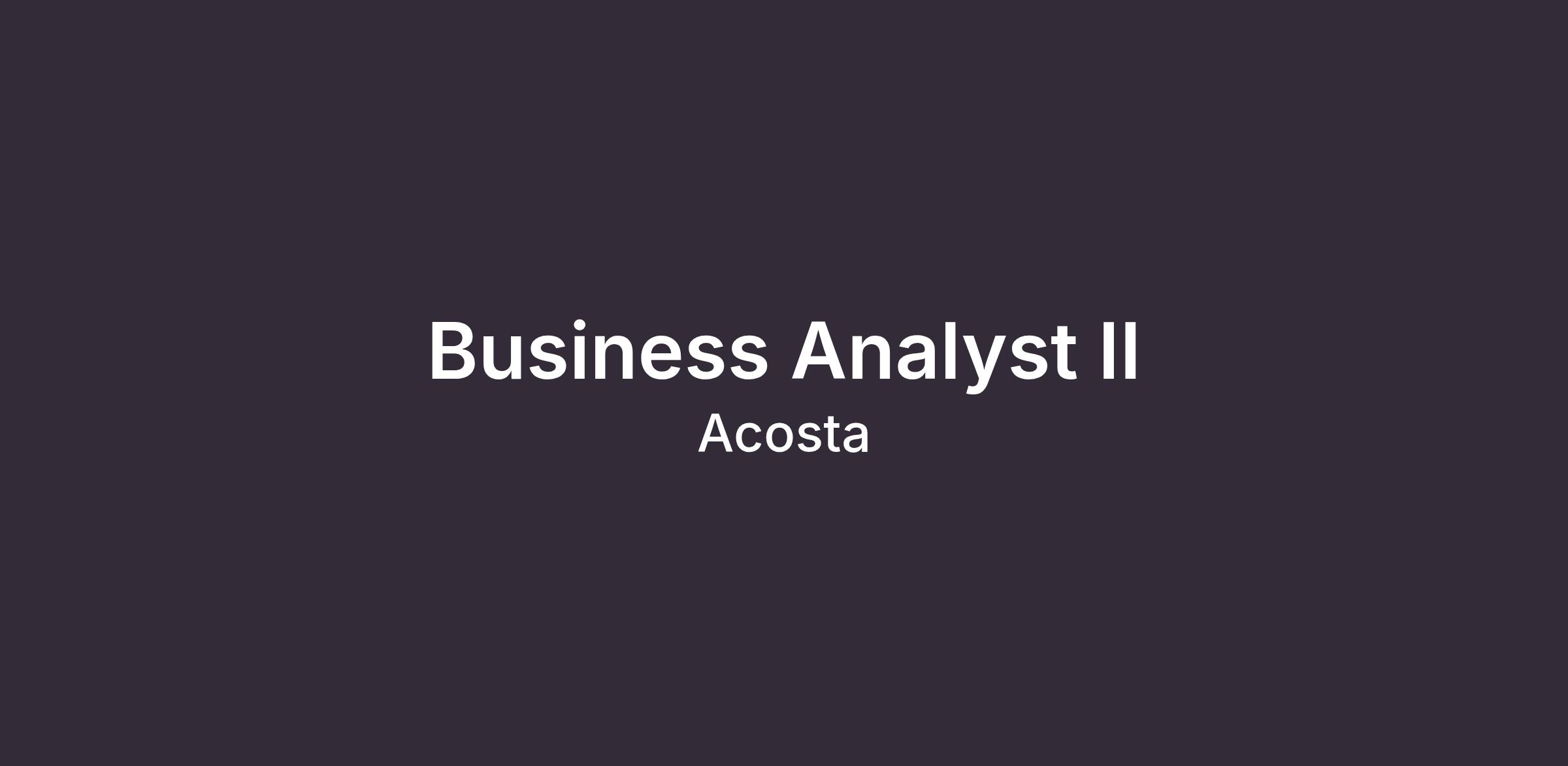 DescriptionBusiness Analysts II represent the business community and IT in prioritizing, analyzing and documenting business processes, identifying opportunities for improvement/enhancements and negotiating agreements and commitments between business partners (internal and external) and IT from requirements gathering to final implementation and maintenance. BA’s work directly with clients/leadership at various levels within the company and with outside parties to research and identify operational business requirements with sufficient detail and clarity to allow IT staff to collaboratively develop the solution.