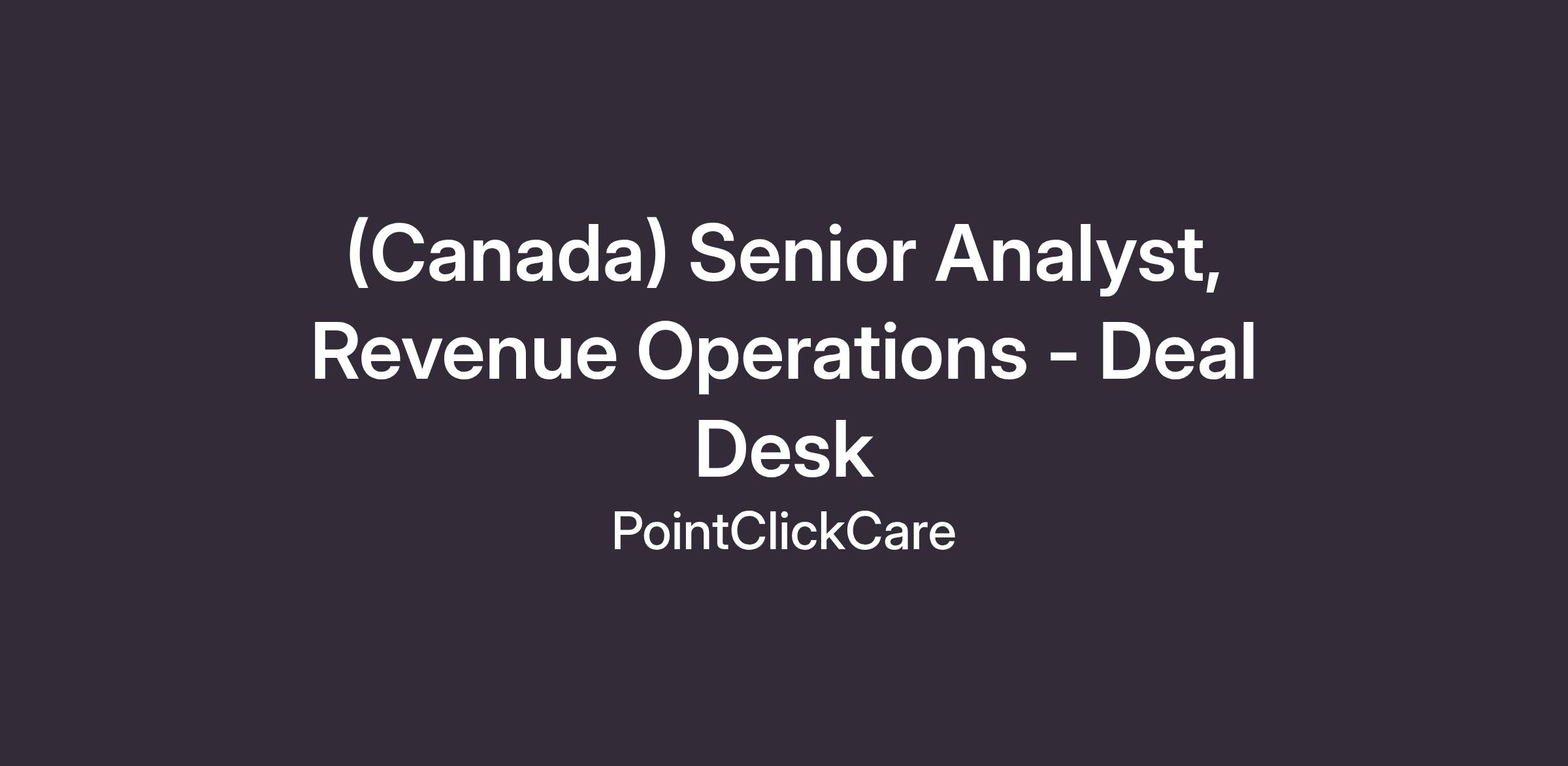 The Senior Analyst, RevOps Deal Desk supports PointClickCare’s centralized Deal Desk by leading financial analysis, deal structuring, and preparation for complex, non-standard commercial deals. This role exists to provide rigorous, data-driven insights that inform pricing,