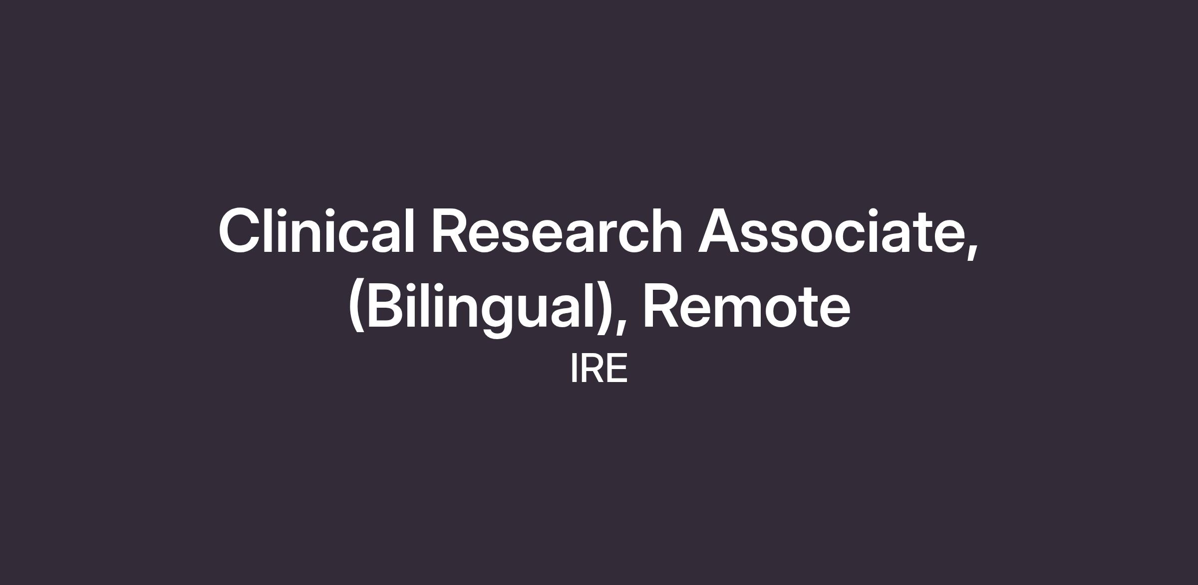 Clinical Research Associate, (Bilingual), Remote