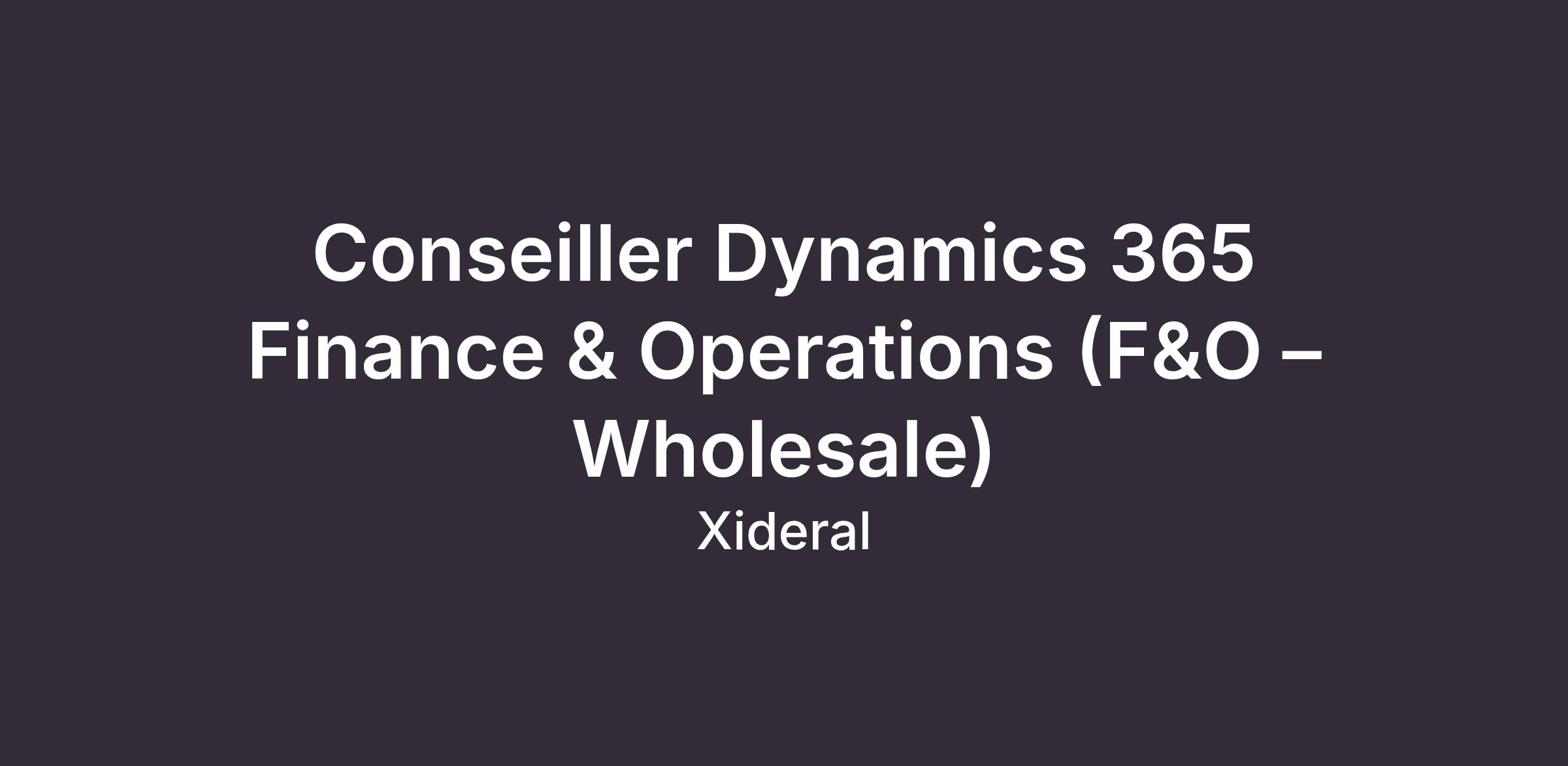 Required Skills and ExperienceProven experience as a Dynamics 365 F&O (Wholesale) specialist or advisor