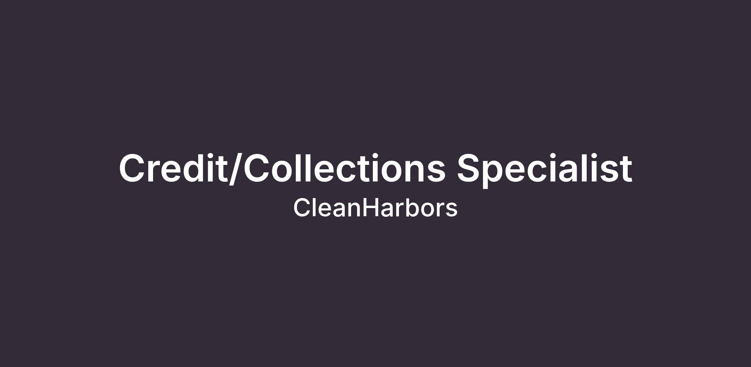 DescriptionClean Harbors is seeking a Credit/Collections Specialist. The Collections Specialist is responsible for collecting large account receivables, investigating credit issues, preparing and maintaining reports and customer files, recommending accounts slated for collection agencies or to be placed on hold, and preparing accounts receivable adjustments. This is a work from home position.