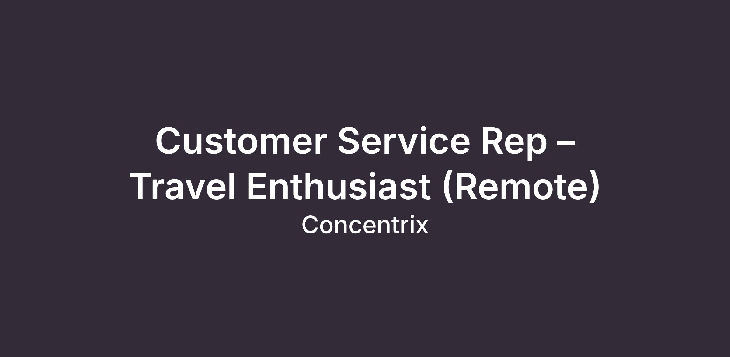 Title: Customer Service Rep – Travel Enthusiast (Remote)