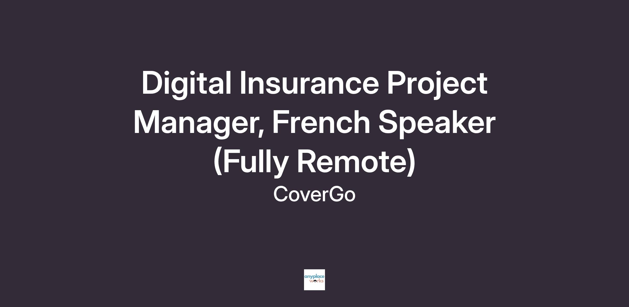 Digital Insurance Project Manager, French Speaker (Fully Remote)