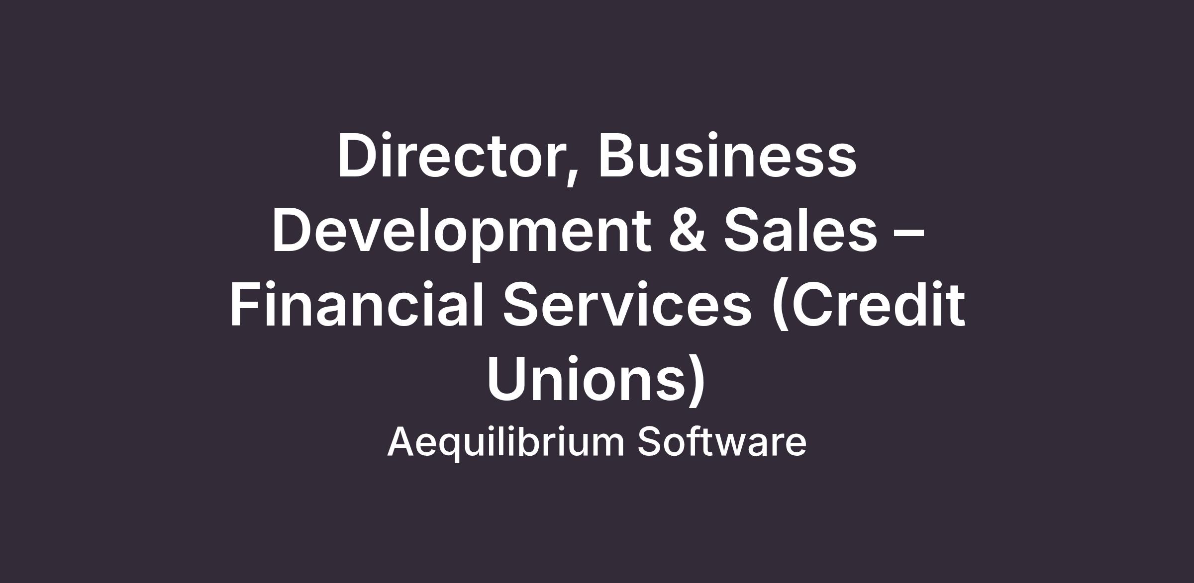 Director, Business Development & Sales – Financial Services (Credit Unions)