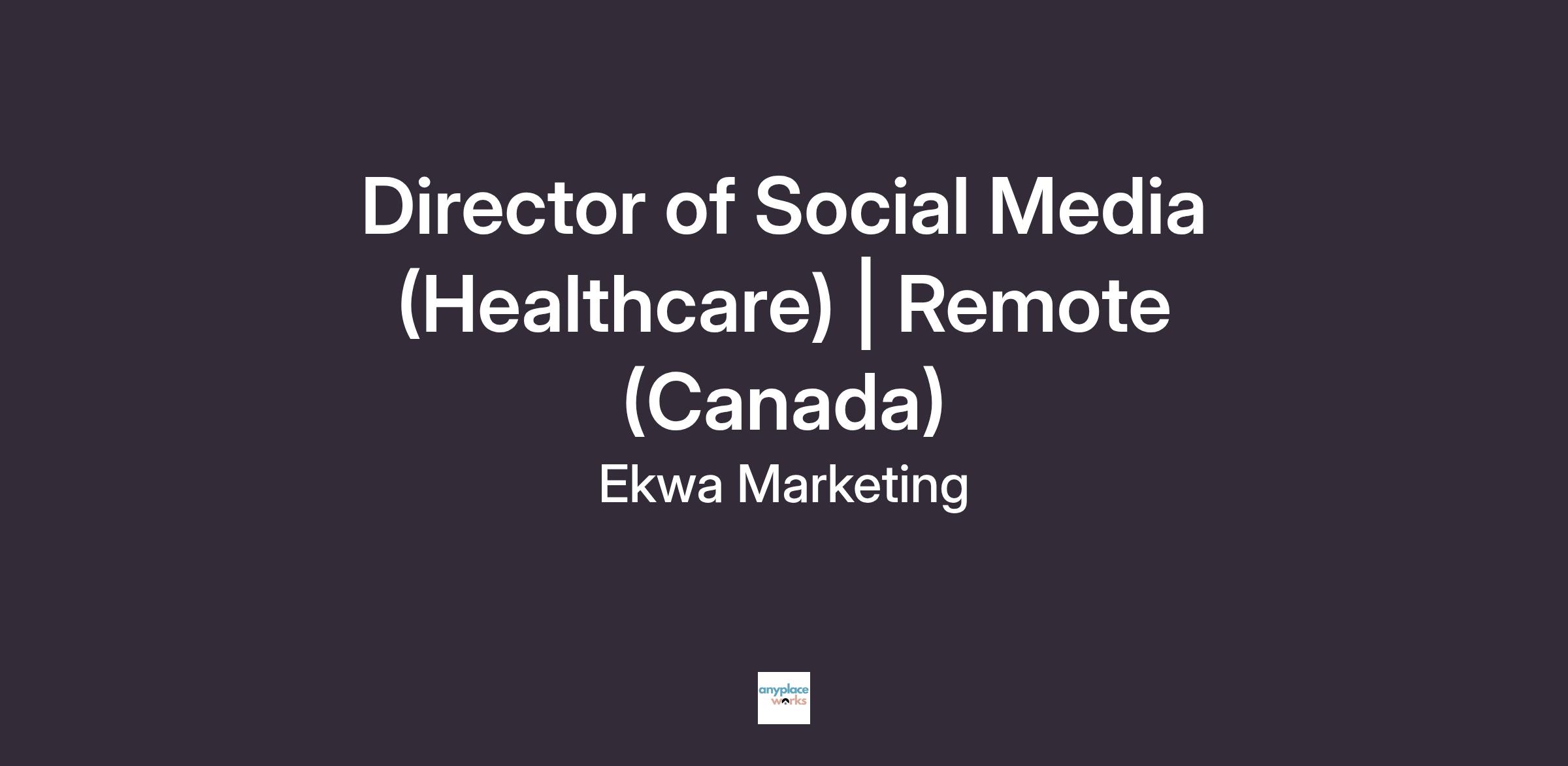 Director of Social Media (Healthcare) | Remote (US/Canada)
