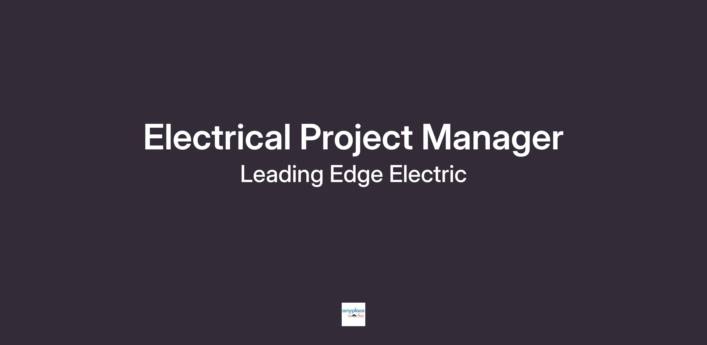 We’re looking for an Electrical Project Manager to join our growing team. Reporting directly to the President and working closely with our existing team, you will be responsible for overseeing the seamless execution of commercial and light industrial projects, ensuring client satisfaction and upholding our core values of building trust, working together, and providing solutions. We are looking for a natural leader who wants to grow into a key leadership position on our team, helping shape the future of Leading Edge Electric.