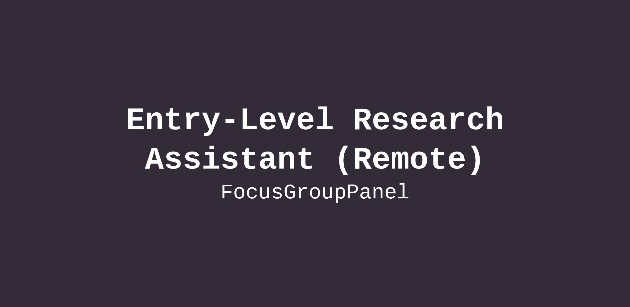 Entry-Level Research Assistant (Remote)