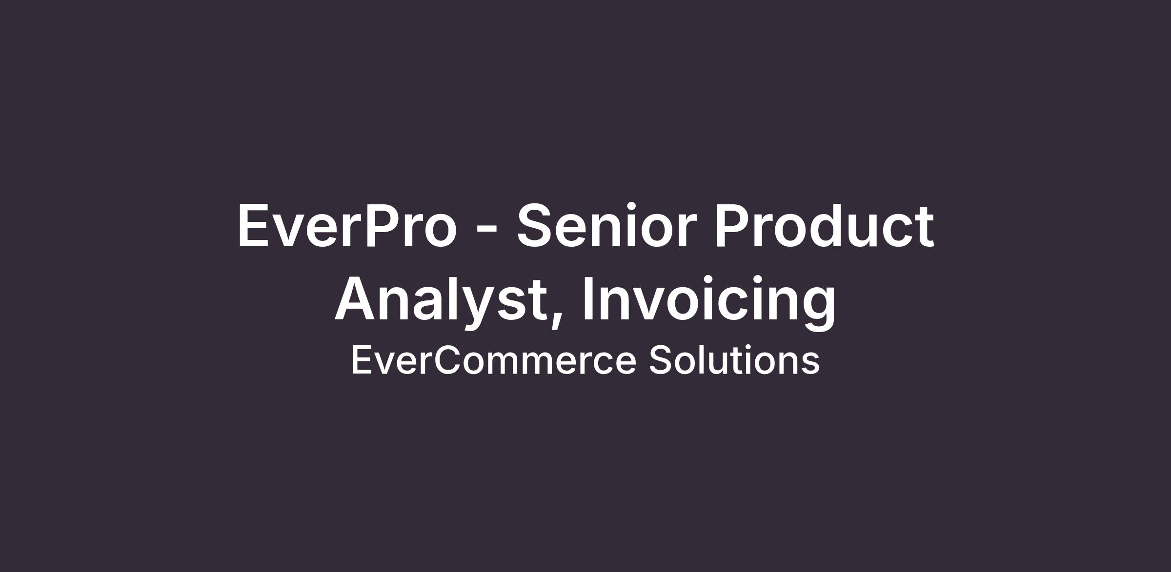 We are looking for a Senior Product Analyst to focus on Invoice Simple, one of our EverPro products.