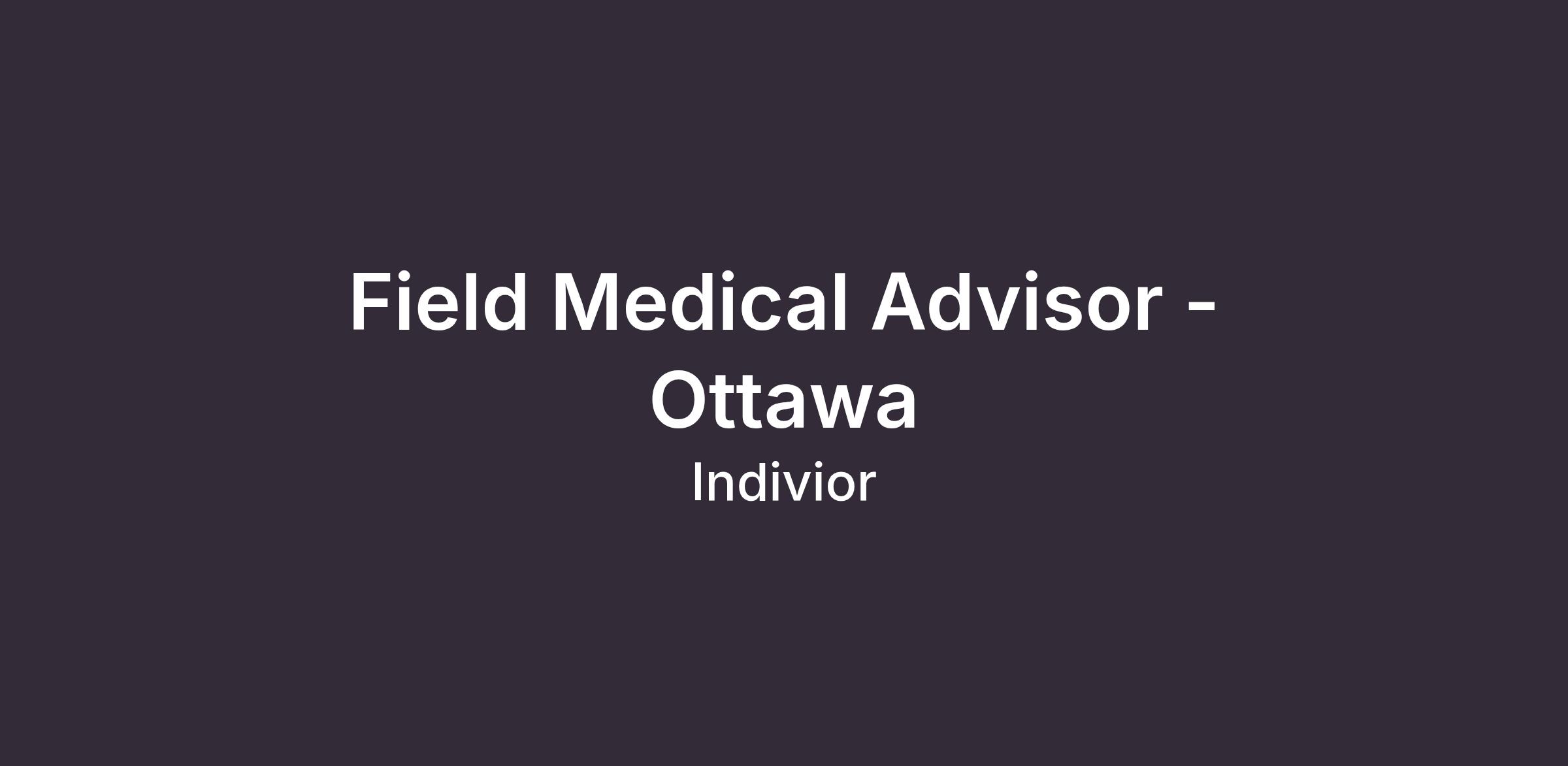 Field Medical Advisor - OttawaPOSITION SUMMARY: The Medical Science Liaison (MSL) will be responsible for providing non-promotional scientific, educational, and research support for the Indivior addiction treatment portfolio, specifically involving buprenorphine, in the respective territory. The MSL position is a field-based member of the Medical Affairs team. The MSL should be highly trained in a health care field and well-versed in clinical science to deliver cutting edge data and technical/practical education to Thought Leaders and Health Care Professionals (HCP) practicing Addiction Medicine.