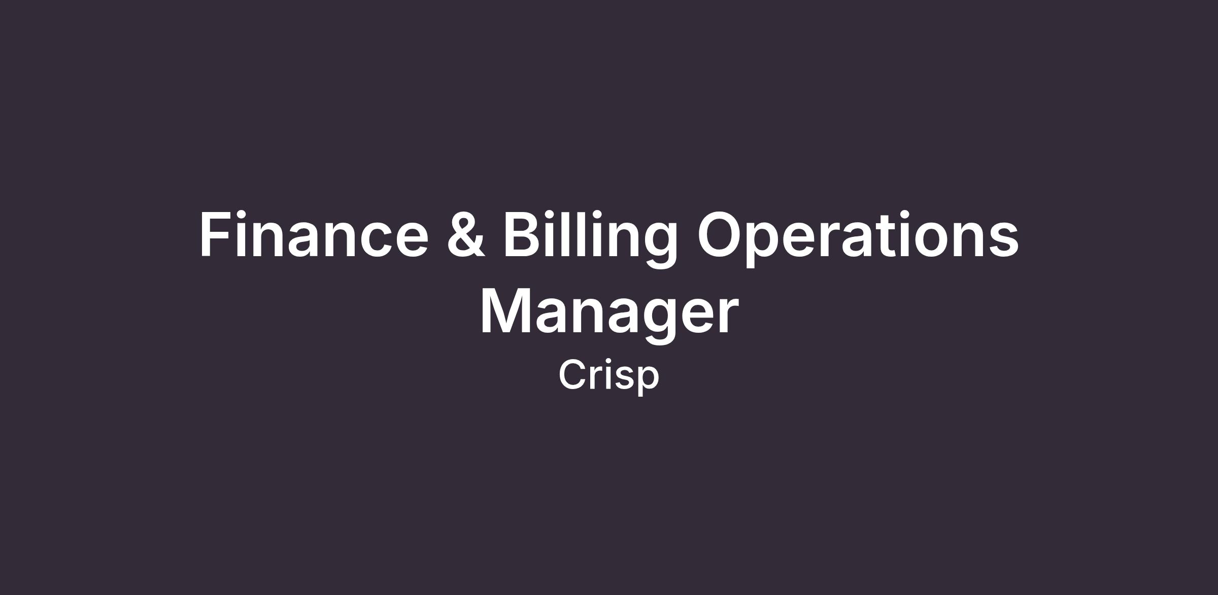 Crisp is hiring a Finance and Billing Operations Manager to own our day-to-day finance administration across bookkeeping, payroll, invoicing, accounts receivable, billing operations and profitability reporting support. This role is ideal for someone who loves clean systems, proactive follow-through, and building a reliable finance operations function inside a fast-moving professional services business.