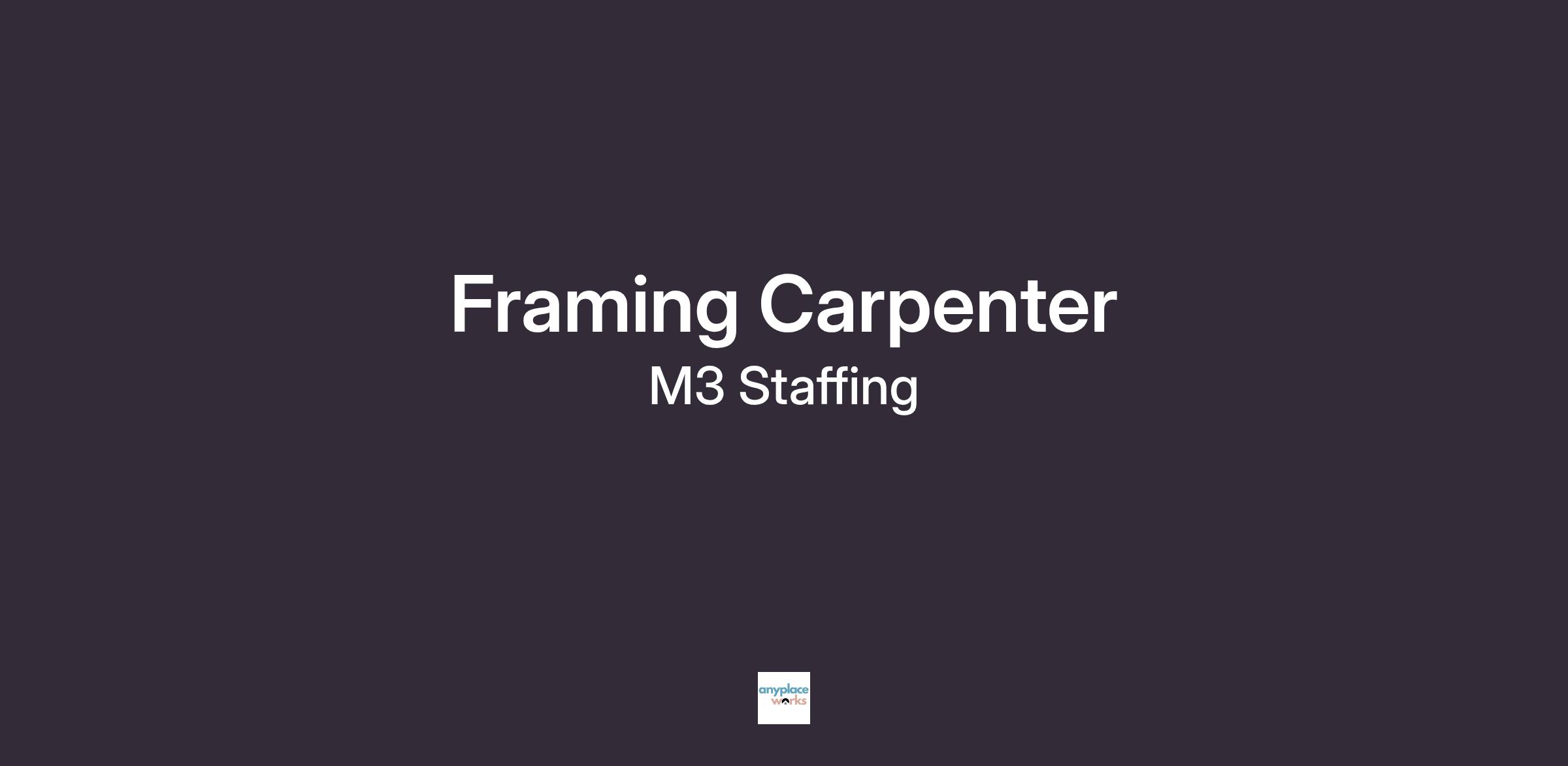 Welcome to M3 Staffing, we are looking for experienced Carpenters to join our team. *Must have Fall Pro ticket & own Harness.