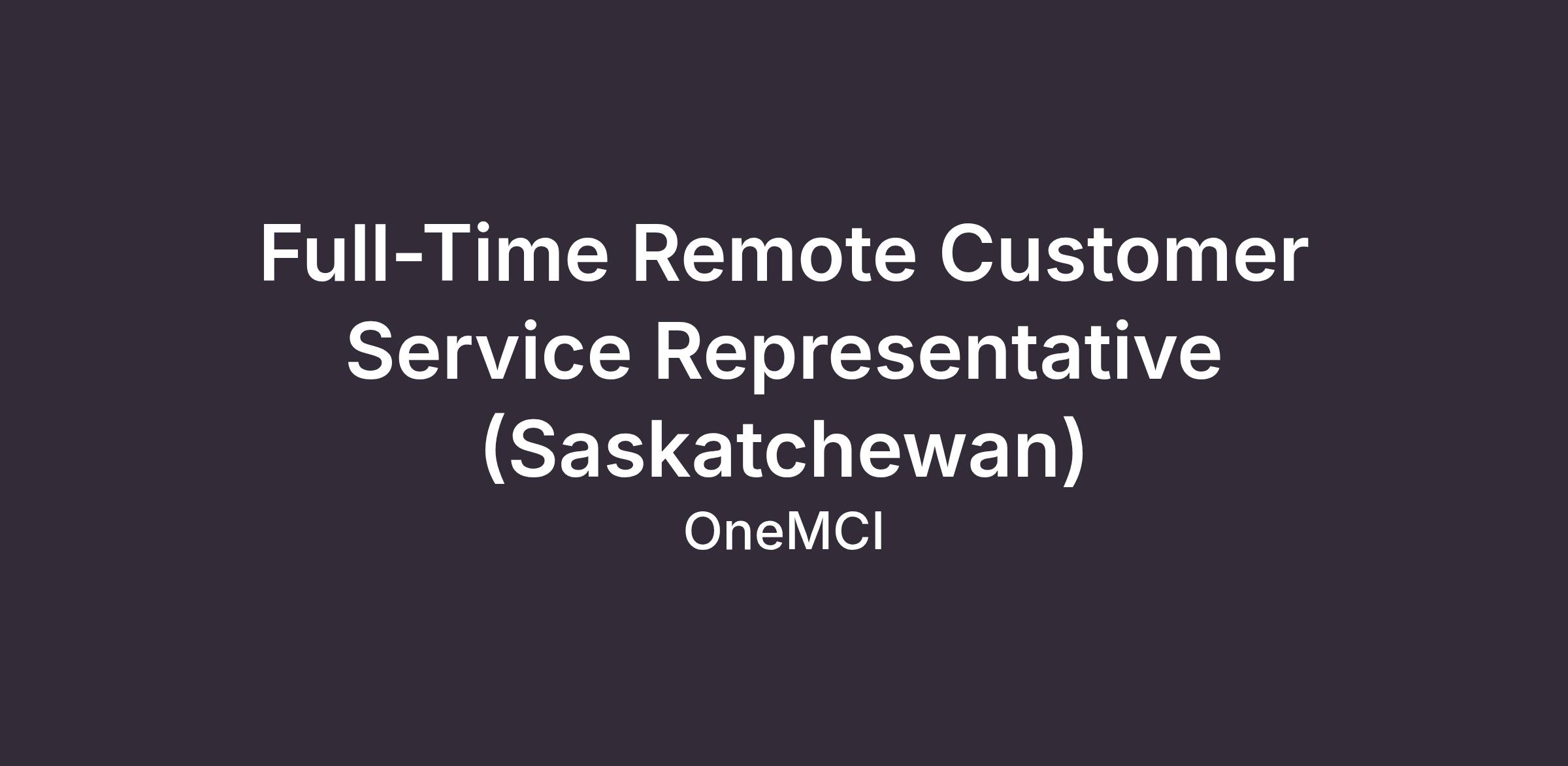 FULL-TIME REMOTE CUSTOMER SERVICE REPRESENTATIVE (SASKATCHEWAN)
