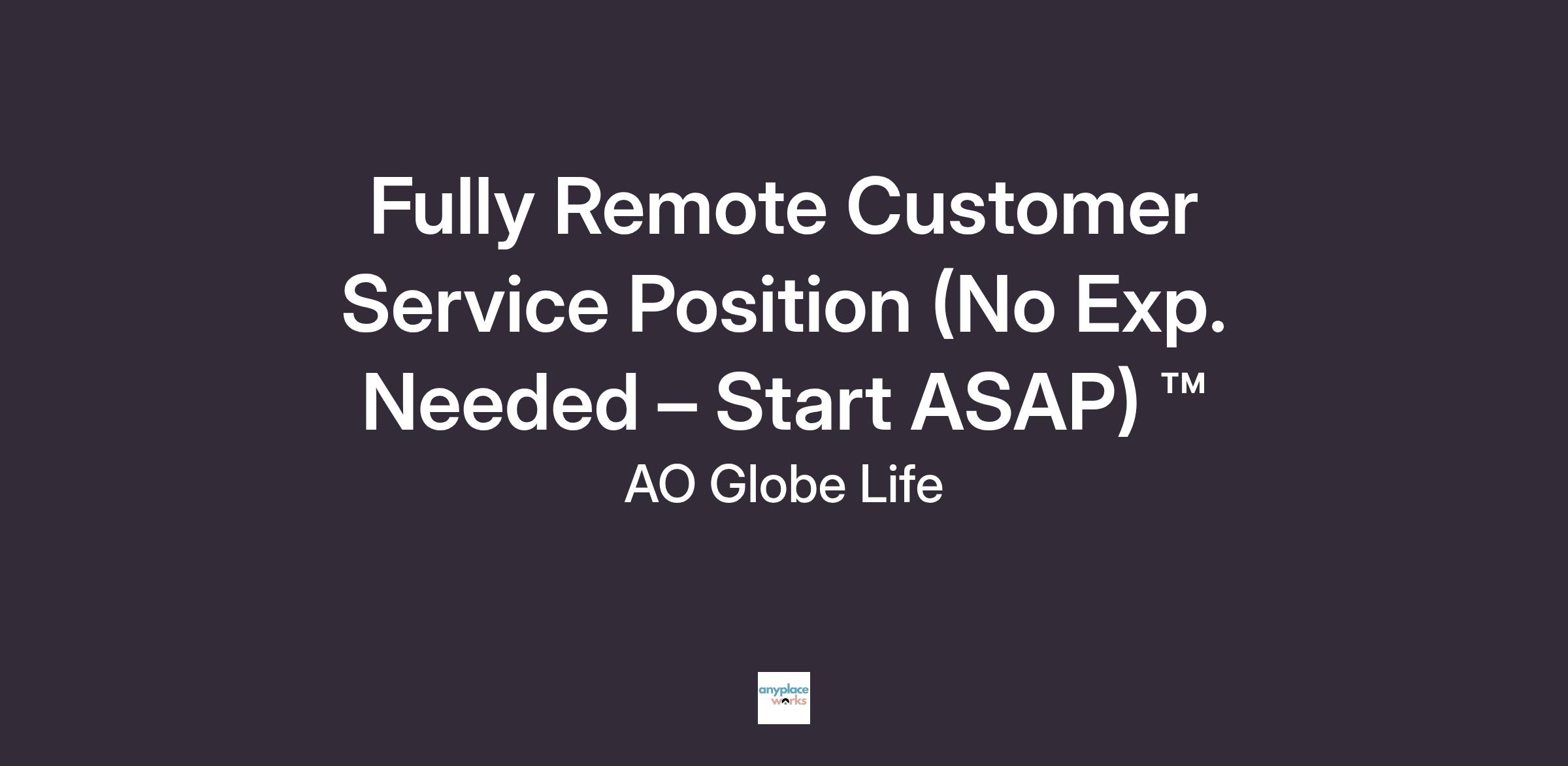 Fully Remote Customer Service Position (No Exp. Needed – Start ASAP) ™