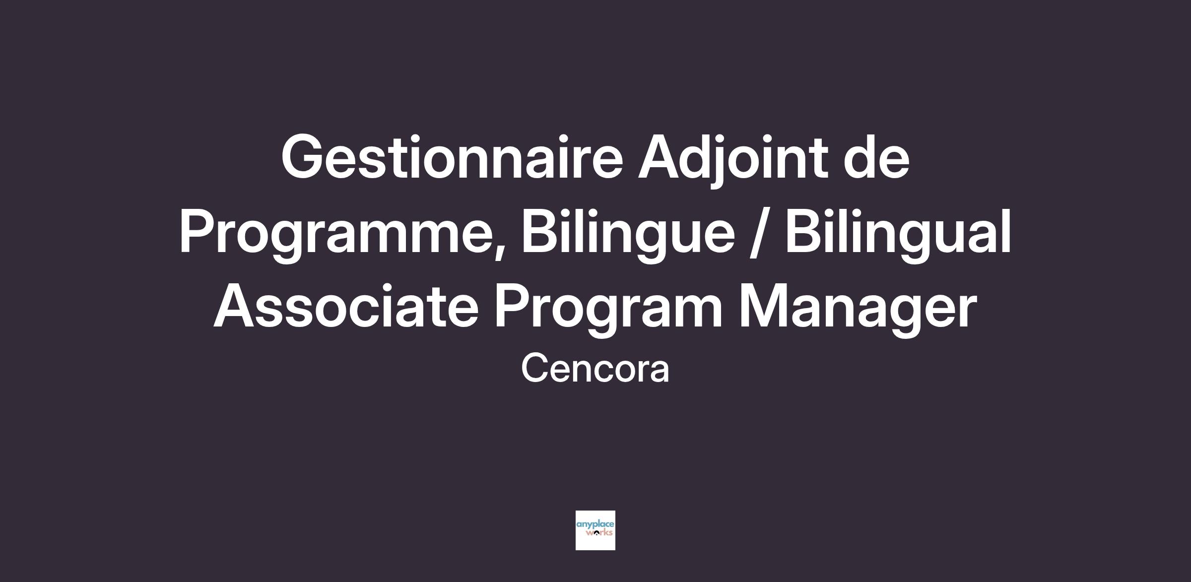 D’autres fonctions et tâches peuvent être confiées au gestionnaire adjoint de programme de temps à autre, selon les besoins.