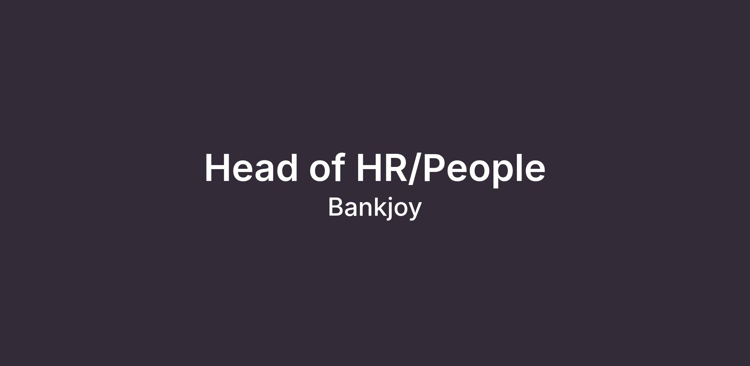 We are seeking a hands-on Head of HR / People Operations to lead Bankjoy’s HR function as the company continues to grow globally.