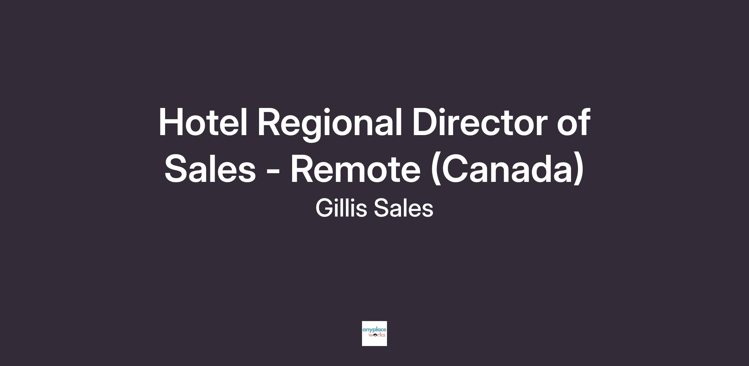 Hotel Regional Director of Sales - Remote (Canada)