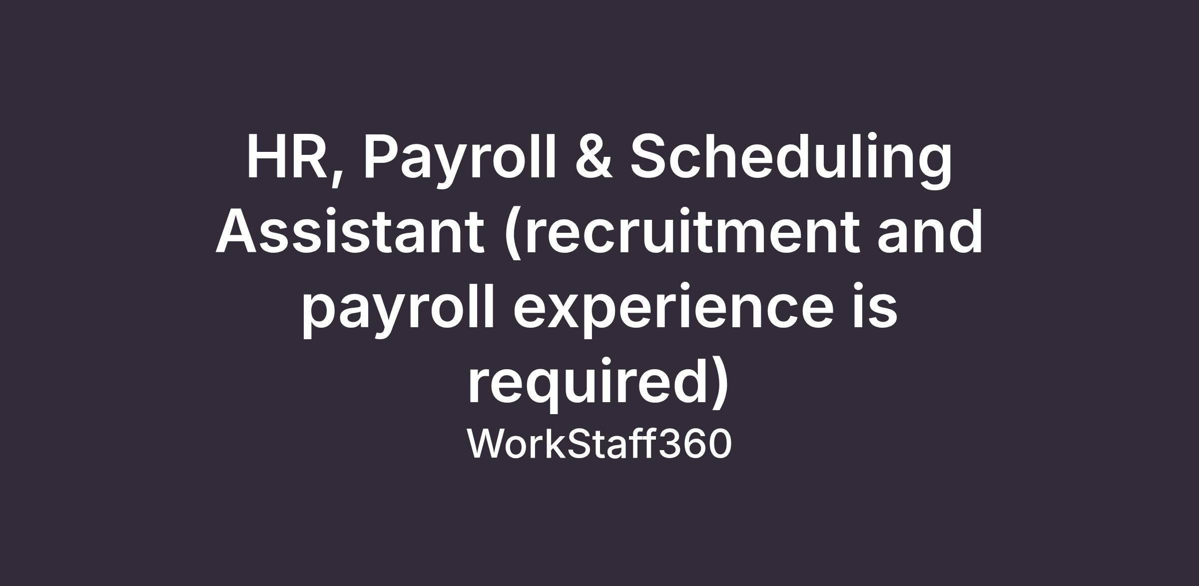 HR, Payroll & Scheduling Assistant (recruitment and payroll experience is required)