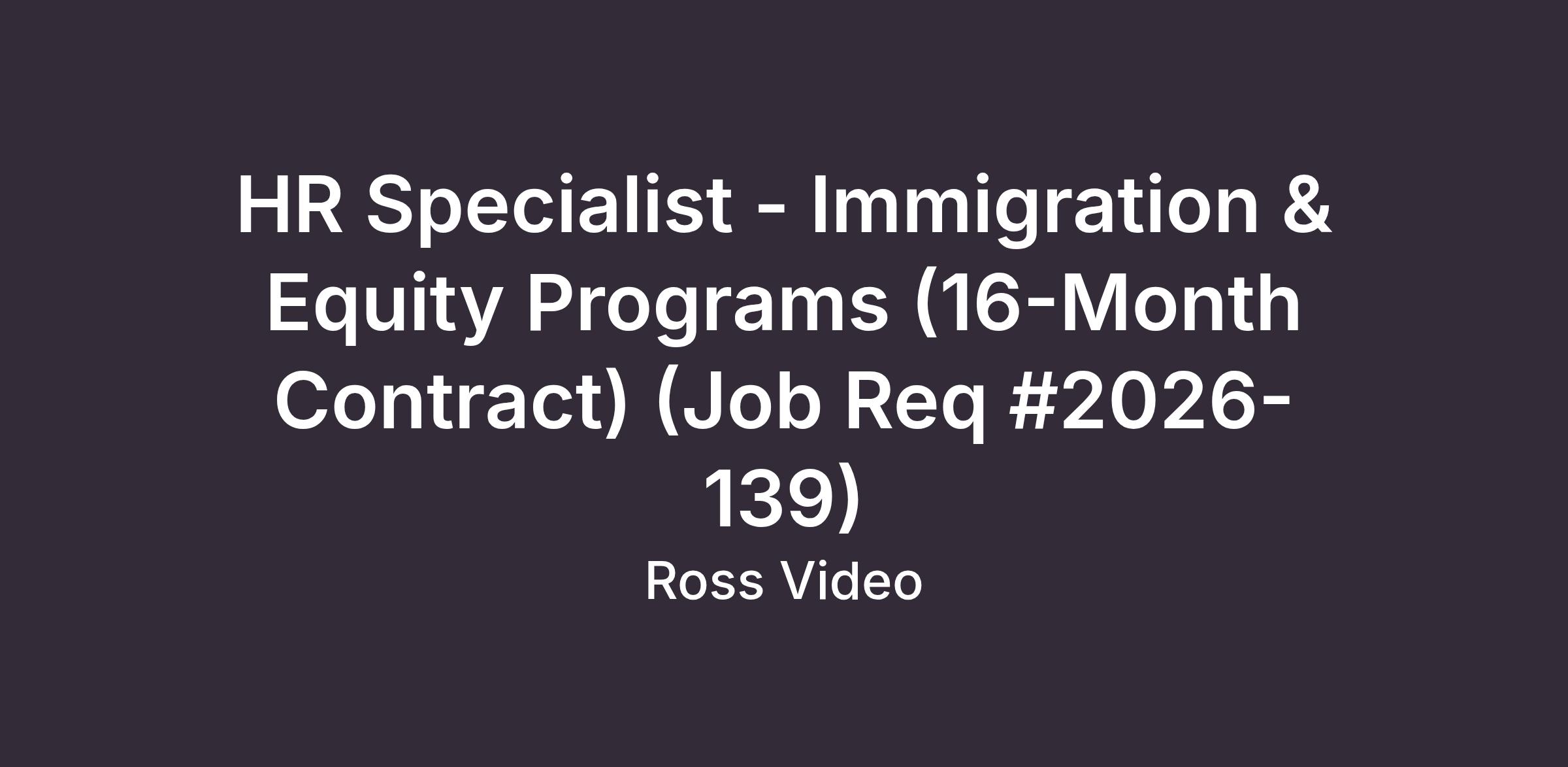 Passionate about live production, Ross Video designs, manufactures and delivers dependable technology and services that power exceptional live video productions seen by billions of viewers around the world every day. Working closely with all members of the Human Resources team, the HR Specialist will play a significant role in our Immigration and Short-Term Business Traveler Programs, ESOP and Stock Option programs. You will be involved in updating and rolling out new programs, policy changes, and providing ongoing support for HR Operations programs.