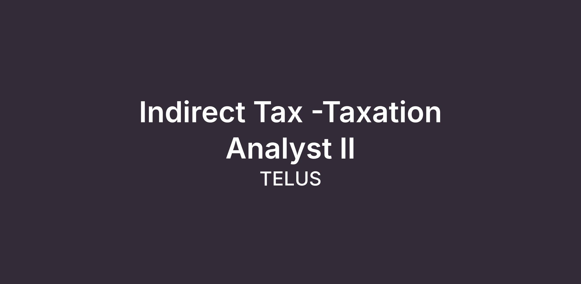 As a Taxation Analyst and member of the dynamic and growing Tax team you will be responsible for a broad range of indirect tax (GST/HST, QST, PST) compliance functions for TELUS entities conducting business in the health, telecommunications, agricultural technology and other innovative industry verticals. As a strong team player you will be comfortable in actively supporting a broad range of initiatives including tax compliance/filings, systems implementations, new product introductions and business process changes.