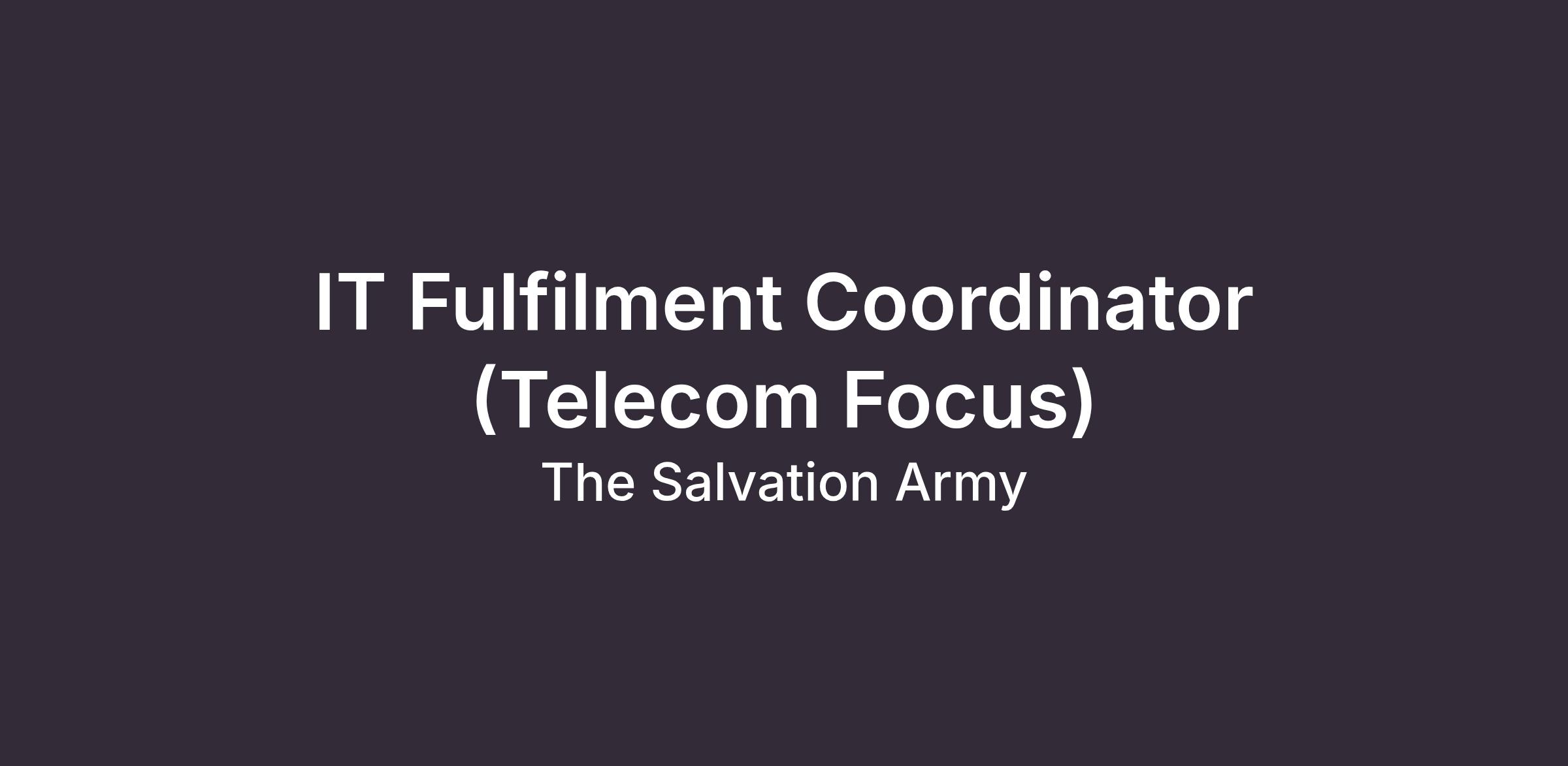 The Fulfilment Coordinator (Telecom Focus) role exists to ensure IT hardware, software, and service requests are efficiently managed from initial request through delivery, setup, and financial completion. By coordinating purchasing, vendor activities, approvals, and asset tracking, the role supports accurate inventory management and responsible use of resources. This contribution enables The Salvation Army in Canada to deliver reliable technology services, control costs, and provide a positive, consistent experience for staff and service locations across the organization.