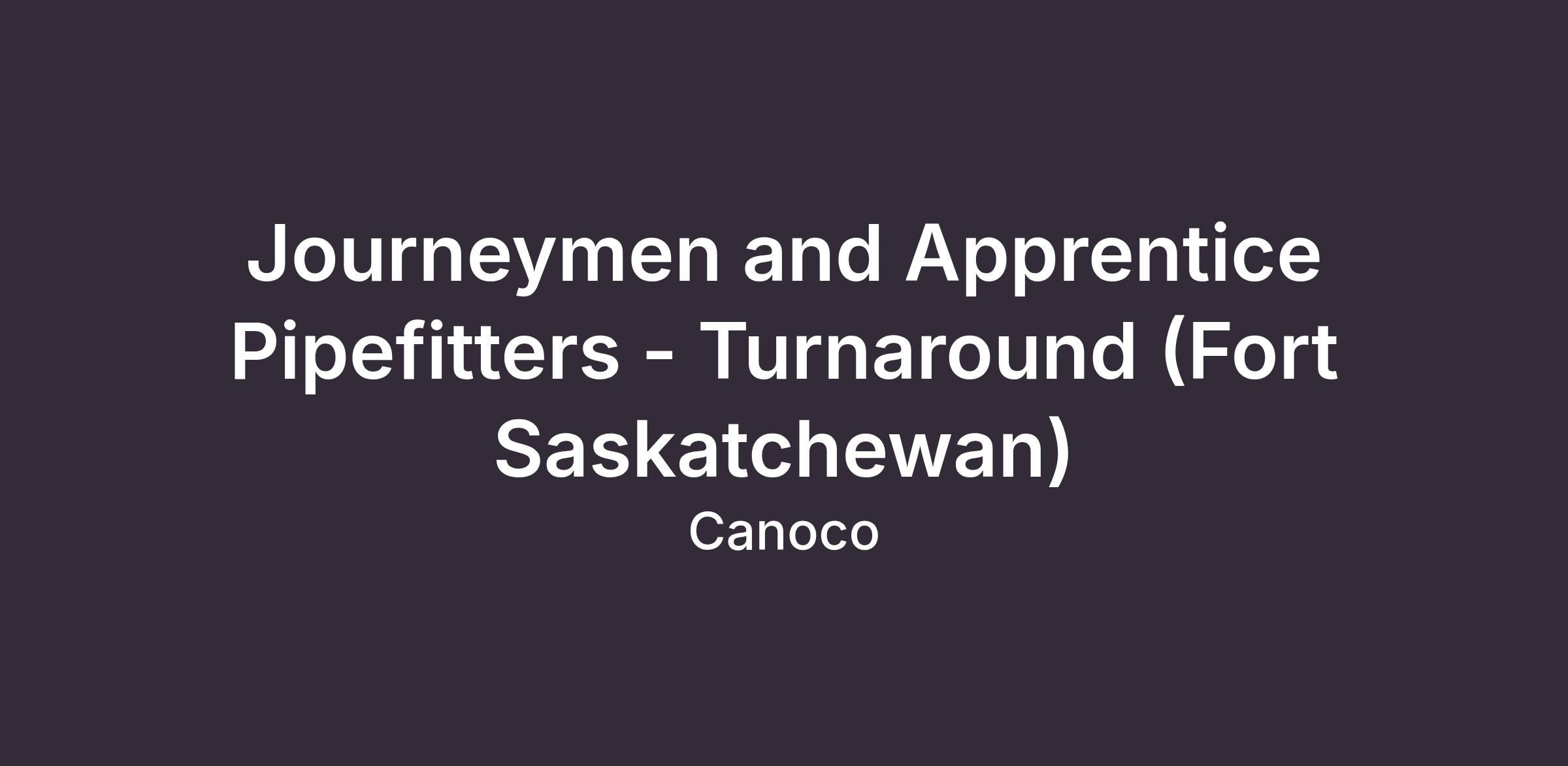 Position: Journeyman & Apprentice Pipefitters – Turnaround (Fort Saskatchewan AB)