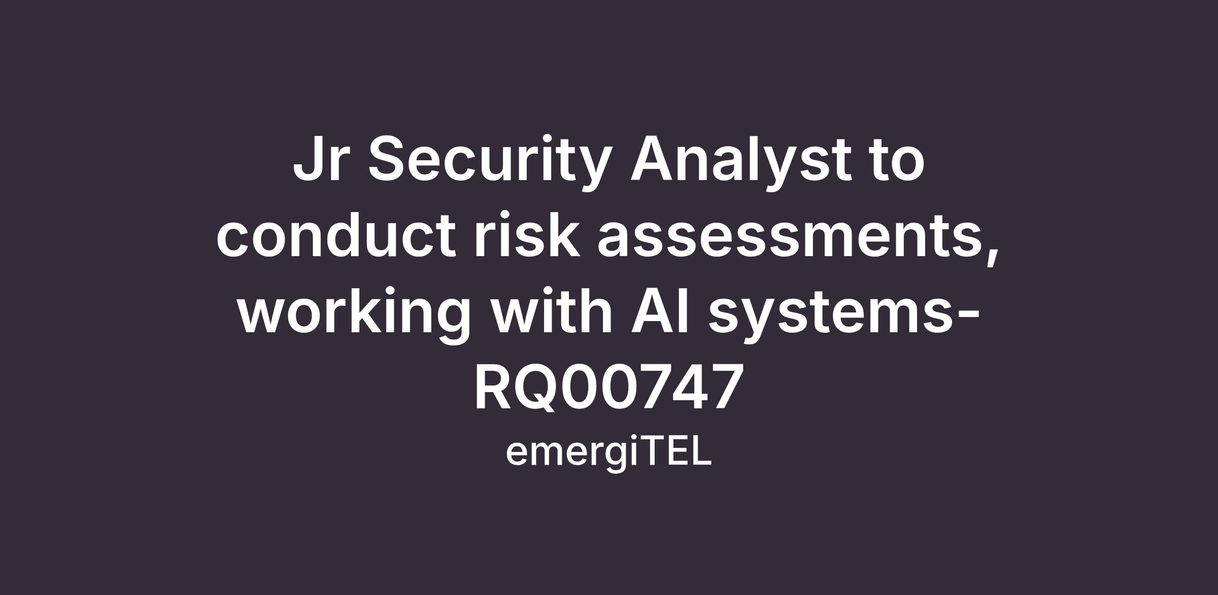 Jr Security Analyst to conduct risk assessments, working with AI systems-RQ00747