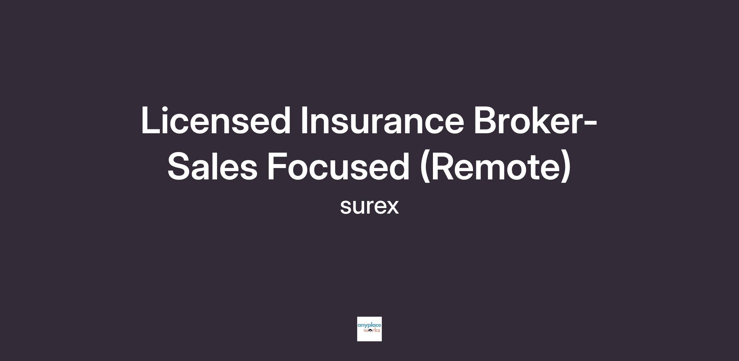 Licensed Insurance Broker-Sales Focused (Remote)