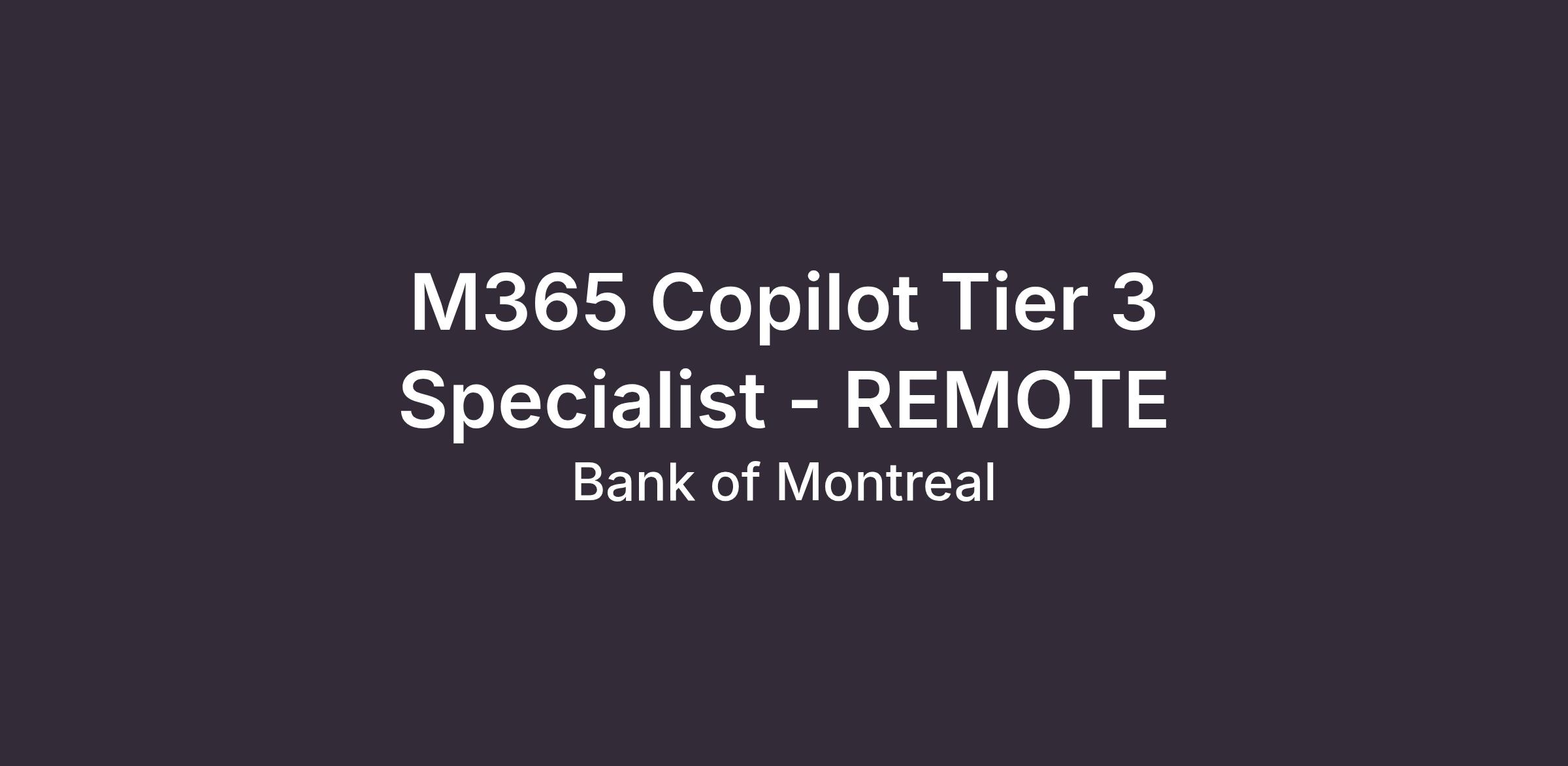 Oversees, manages, and supports the operational aspects of Microsoft 365 Copilot services (Copilot for Work/Web, Copilot Studio, Copilot for Azure, Security Copilot, etc.) across the enterprise. Ensures Copilot features run smoothly, securely, and in compliance with BMO’s policies. Applies in-depth knowledge of Microsoft 365 administration, cloud security, and IT service management to maintain seamless Copilot user experiences and optimize service performance.