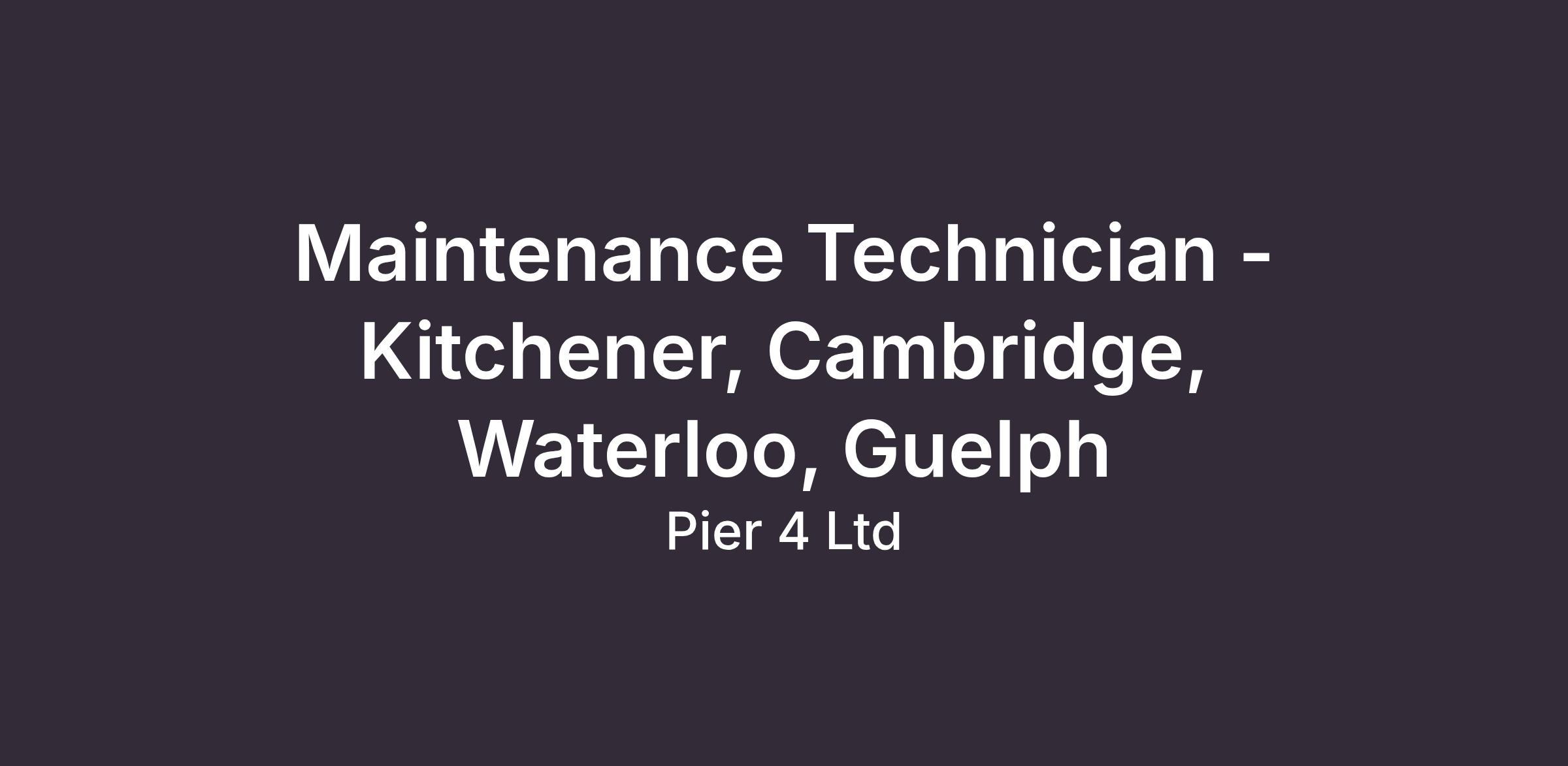 At Pier 4 our portfolio of multi-family real estate assets is growing and as a result we are looking for an experienced Maintenance Technician to join our team in , Kitchener, Cambridge, Waterloo, Guelph Ontario. We are looking for a Maintenance Technician who wants to be part of our exciting journey and is truly engaged in being an advocate of and executing, best-in-class property maintenance.