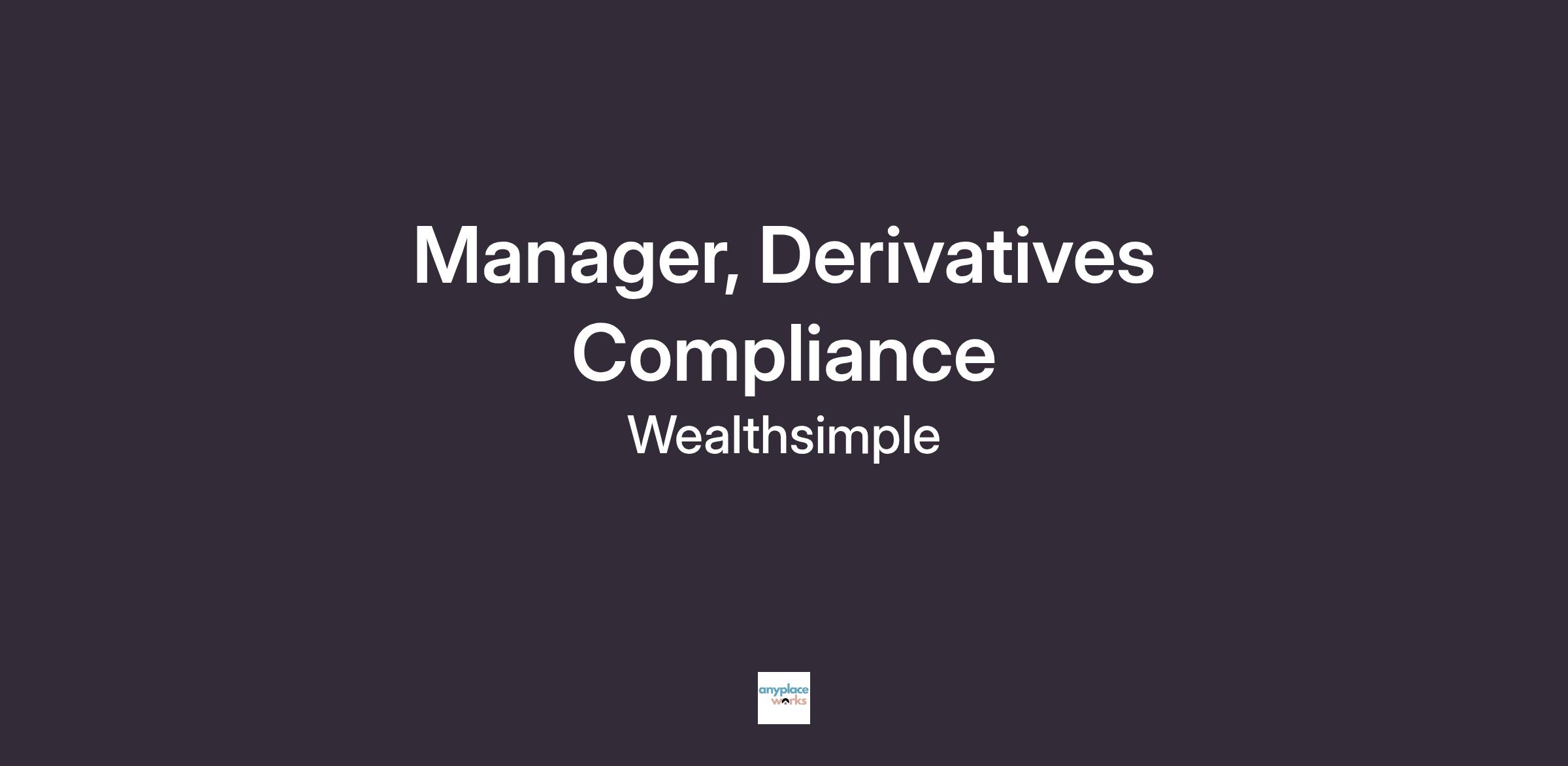 We're on the lookout for a super motivated and experienced Manager, Derivatives Compliance to join our growing Regulatory (Reg) team. You'll report directly to our Director, Securities & Enterprise Compliance Programs and be a key player in shaping our compliance future.