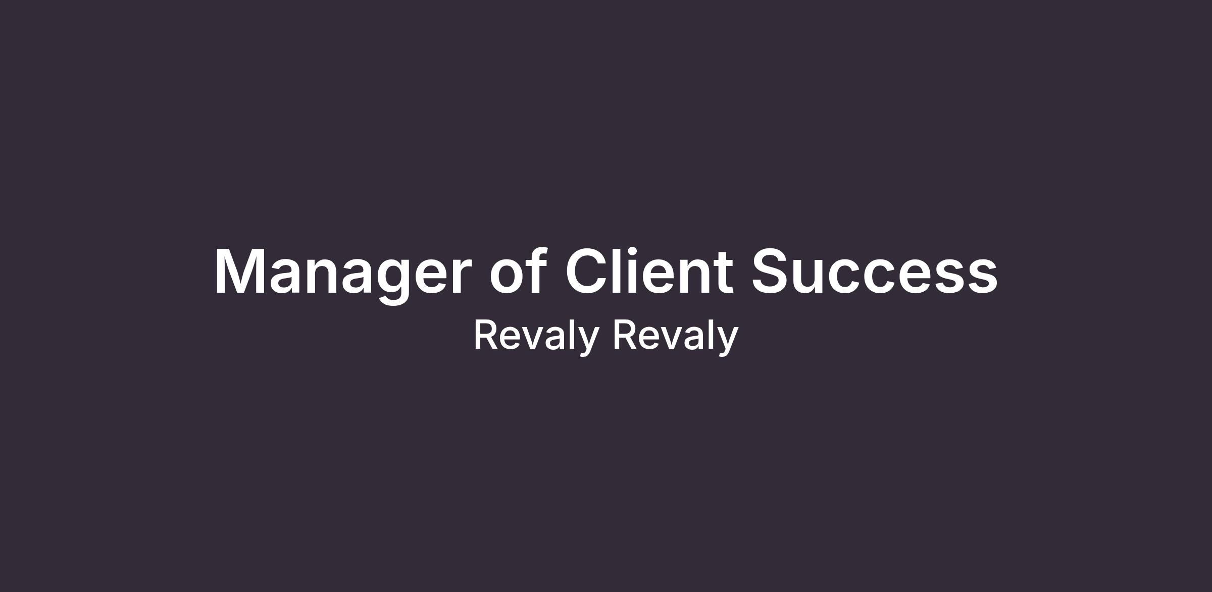 Now, we’re scaling and we’re looking for a Manager of Client Success.
