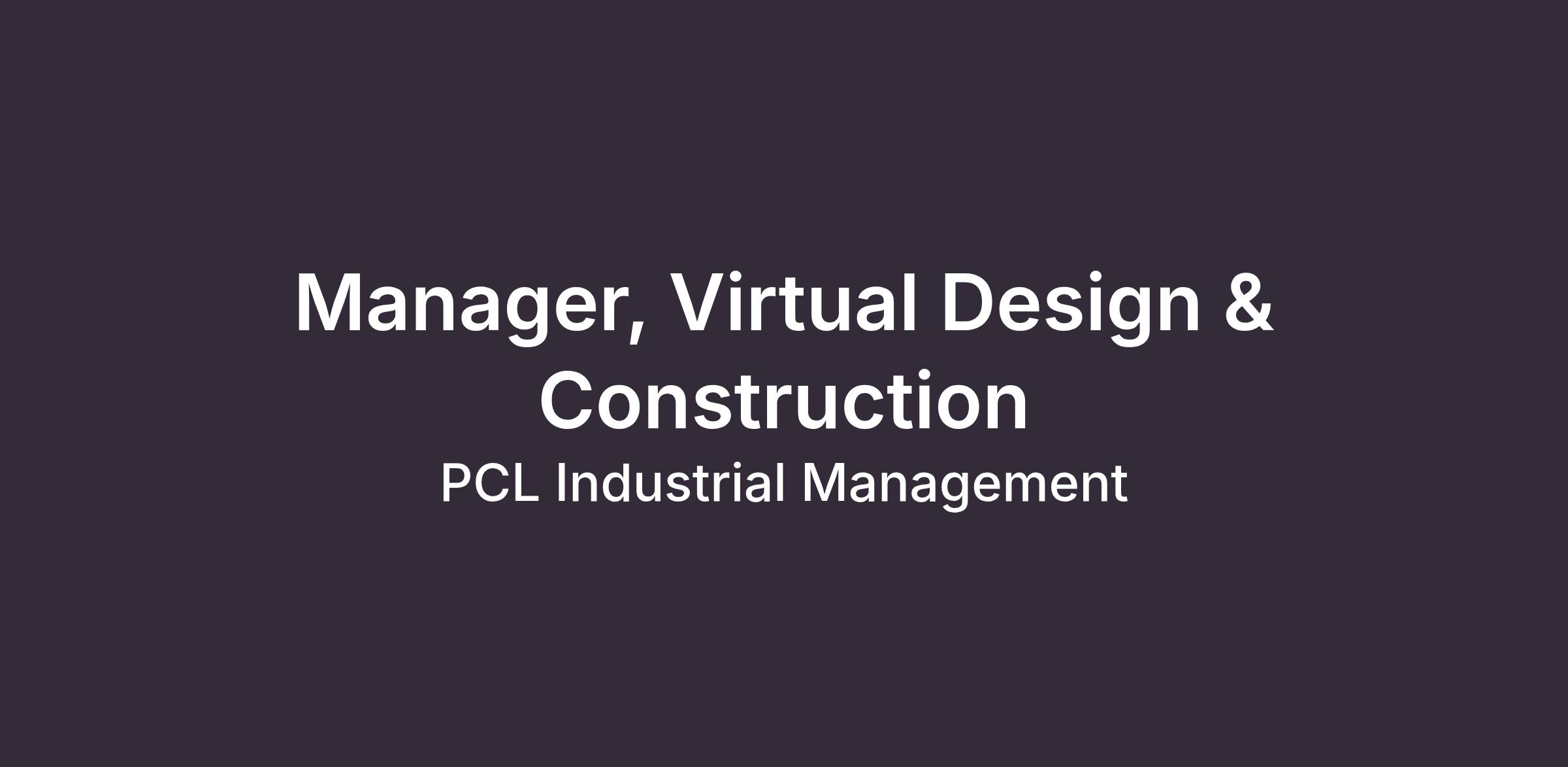 Here's how a Manager, Virtual Design & Construction for PCL Industrial Management Inc. within Edmonton Industrial Management contributes to our team: