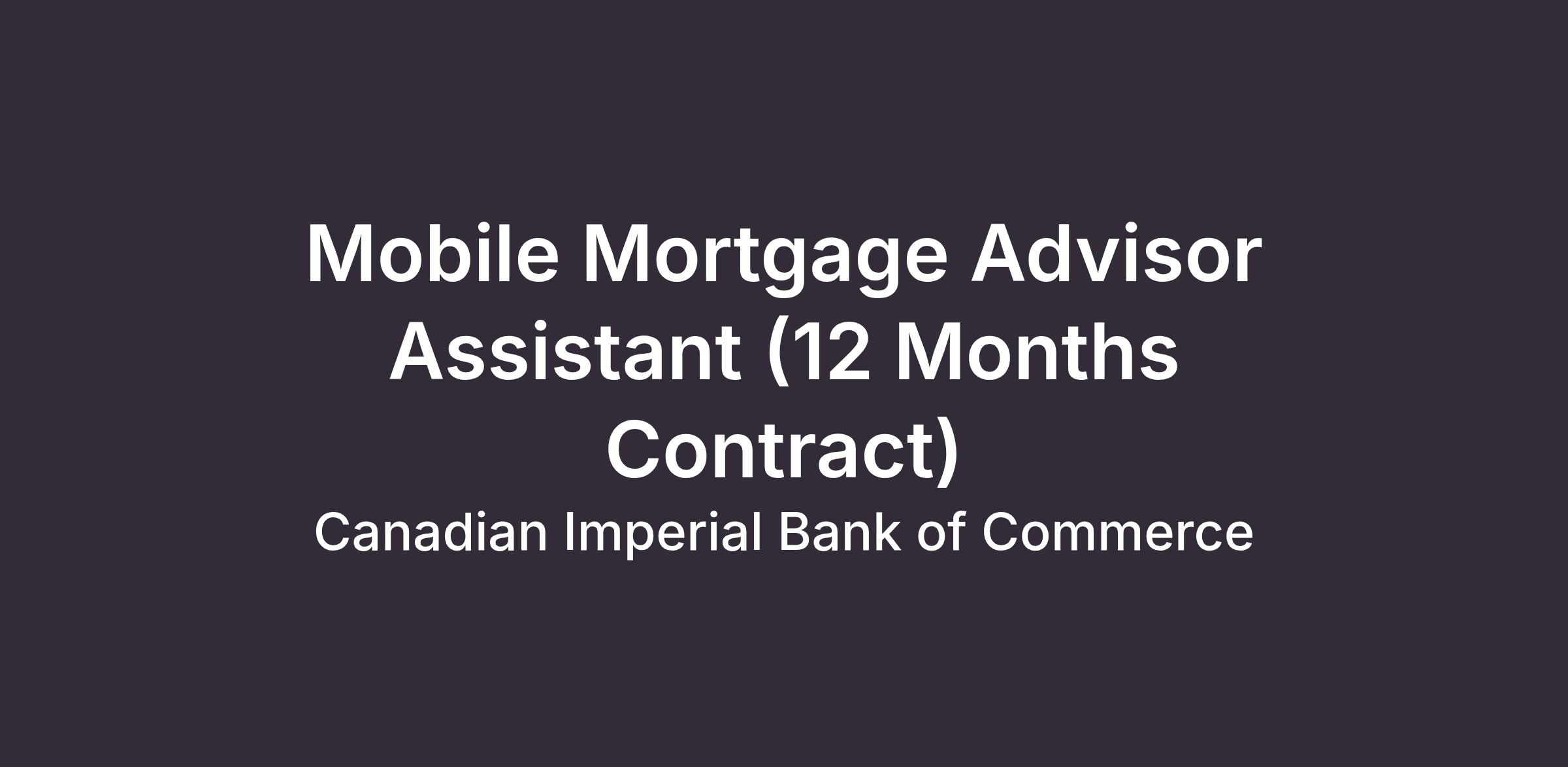 You’ll be joining CIBC’s Personal and Small Business Banking team. You'll be working in a flexible, fast-paced environment where you'll play a key role in helping your clients achieve their goal of home ownership. As a Mobile Mortgage Advisor Assistant, you'll assist the Mortgage Advisor in building their own business.