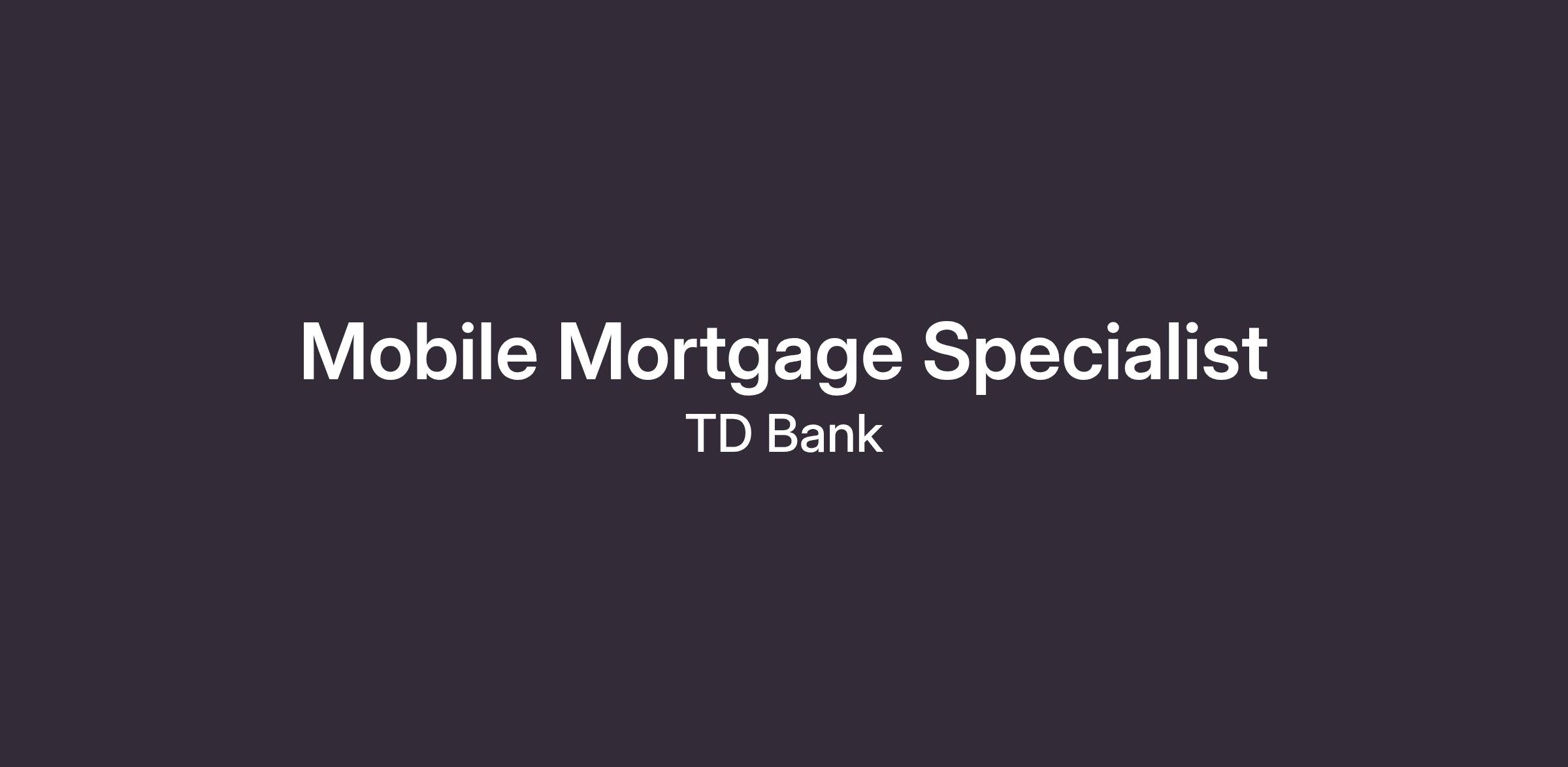 TD is growing their Mobile Mortgage Sales Force and seeking proven sales professionals to join our dynamic team!