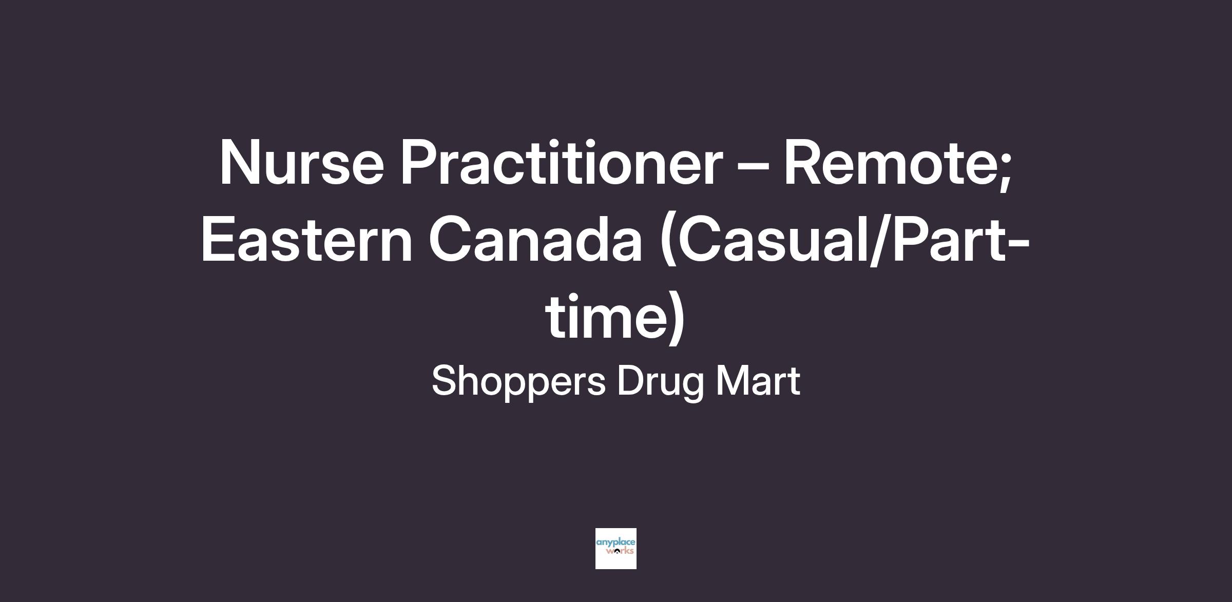 Nurse Practitioner – Remote; Eastern Canada (Casual/Part-time)