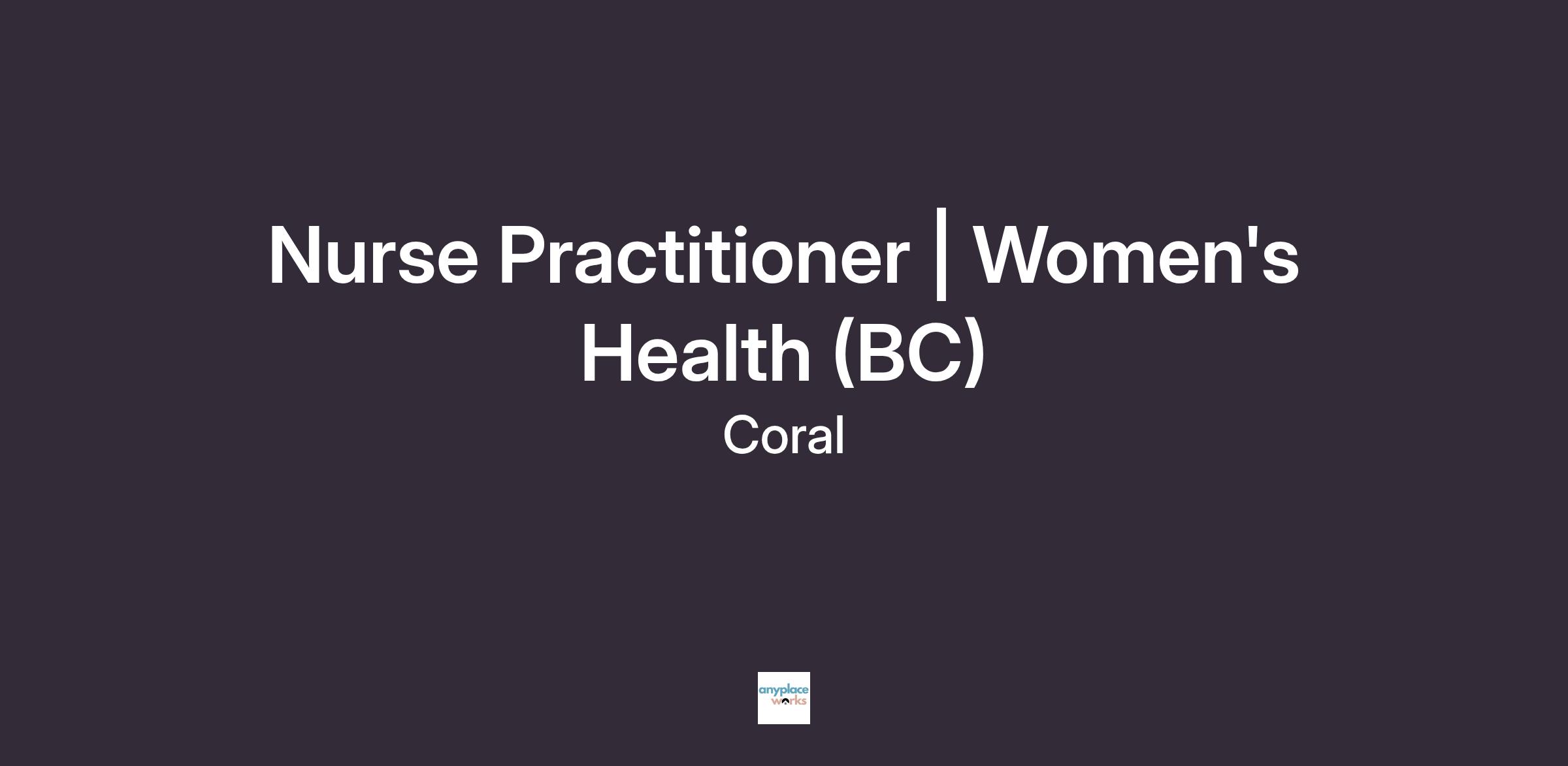 Position: Women’s Health NP (Licensed Medical Professional, member of the BCCNM).