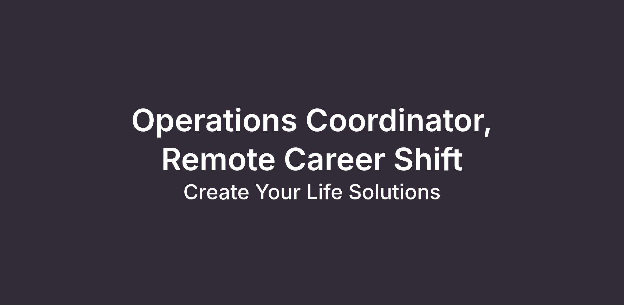 Operations Coordinator, Remote Career Shift